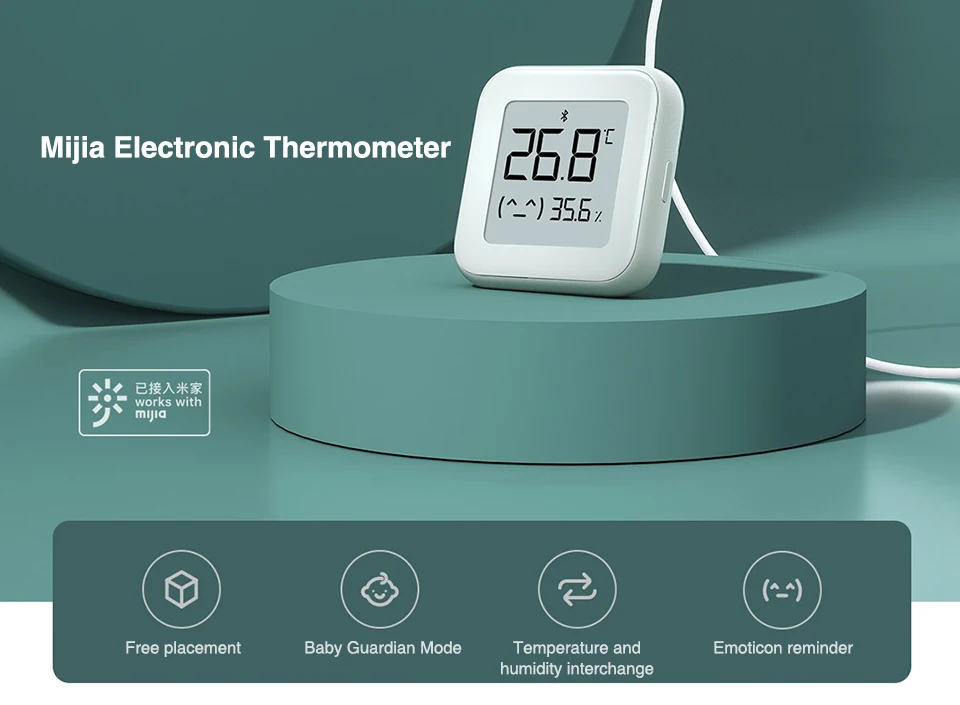 Электронный термометр и гигрометр Xiaomi используют 35 мм x 35 мм электронный чернильный экран в качестве дисплея