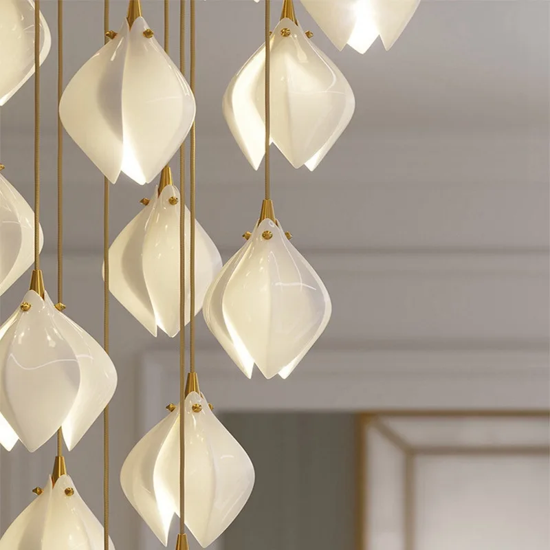 Керамический подвесной светильник в скандинавском стиле, изысканный потолочный светильник в форме бутона, лофт, лестница, ресторан, прикроватный декоративный светильник
