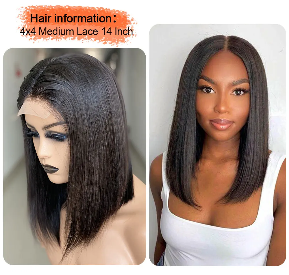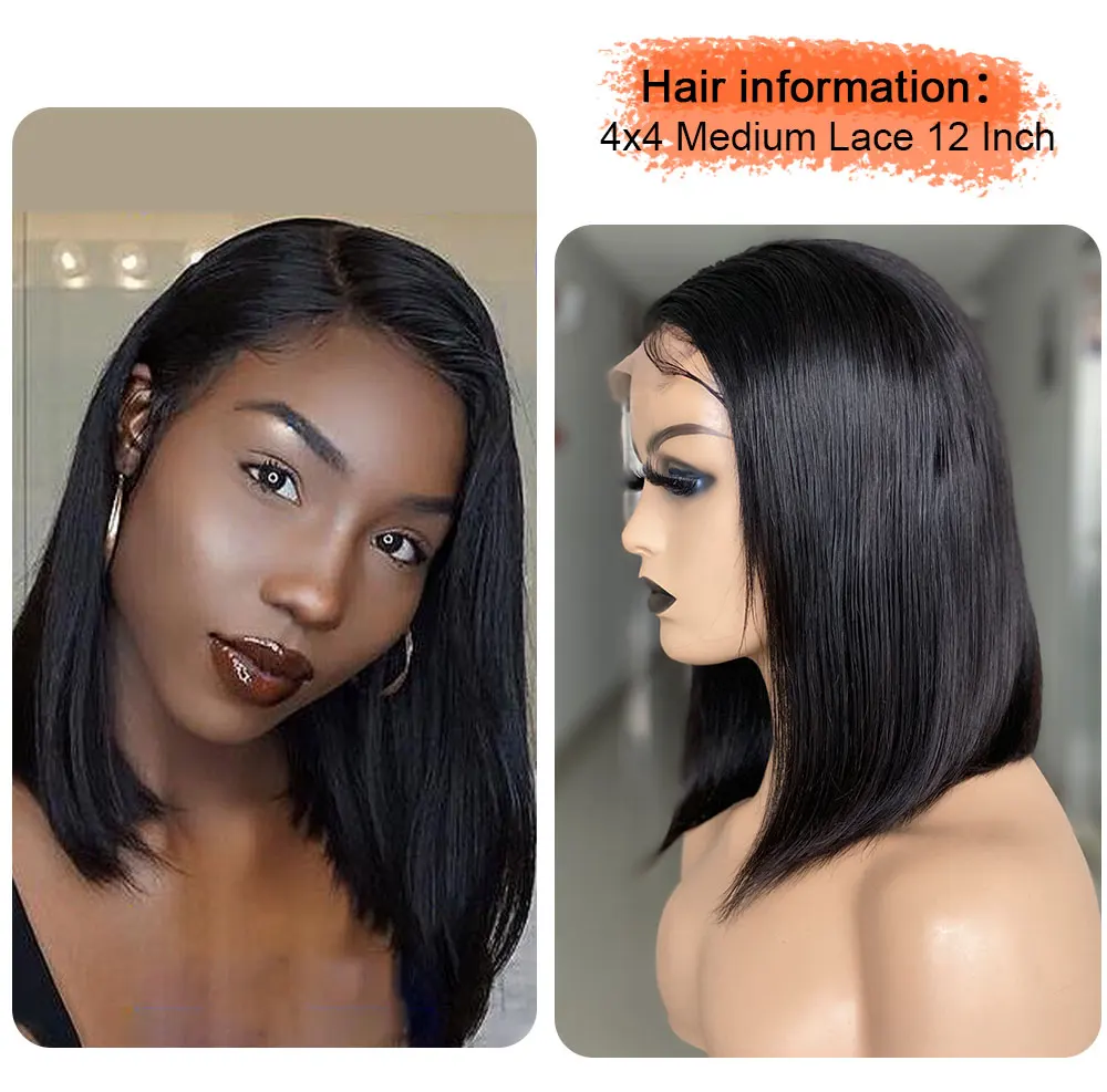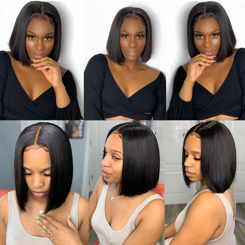 Прямые парики боб, парики из человеческих волос для женщин, 5x5 HD,...