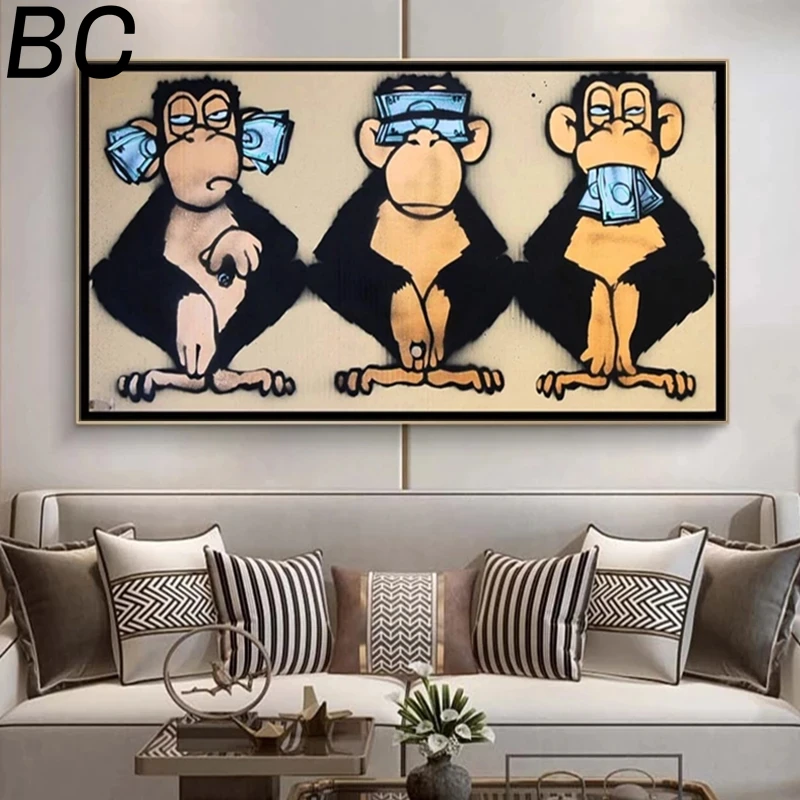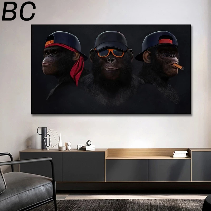 Постер с 3 обезьянами, классное граффити, уличное искусство, Картина на холсте, настенное искусство для гостиной, домашний декор, плакаты и принты, украшение на стену