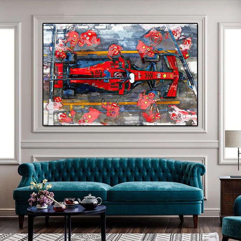 Формула 1 Питстоп, автомобильные гонки, художественный плакат и принты, домашнее настенное искусство, Декор, холст, живопись для гостиной, украшение, роспись