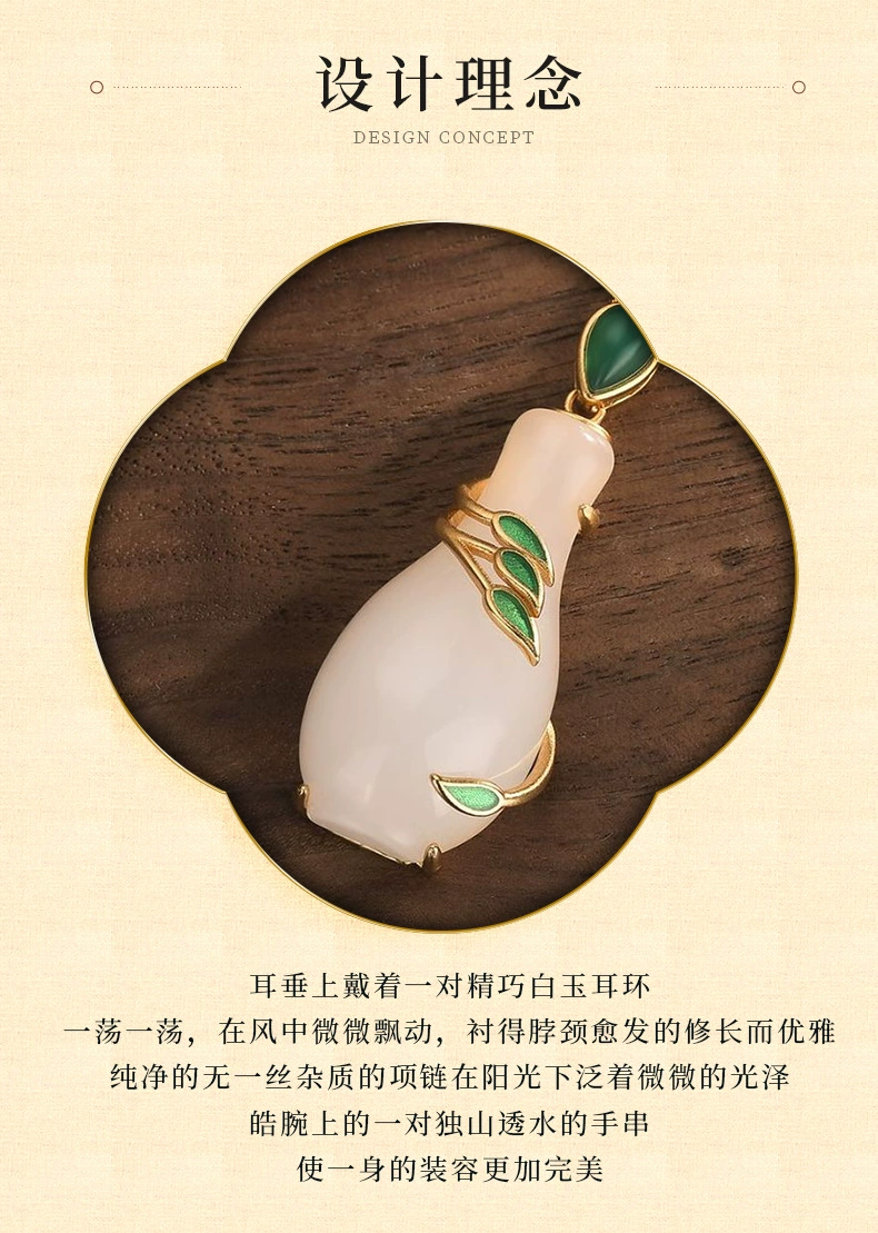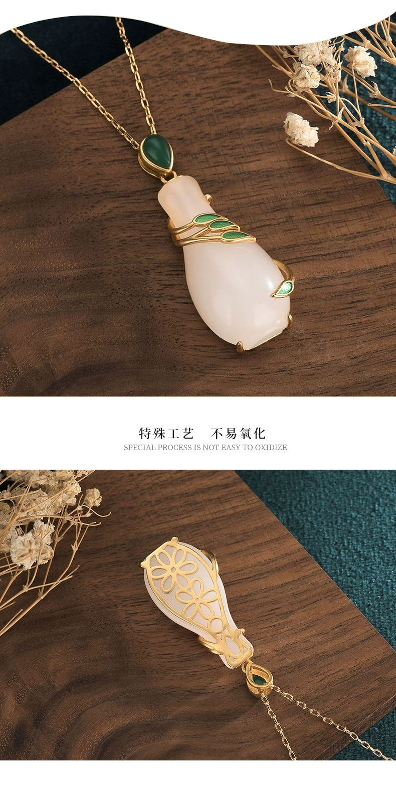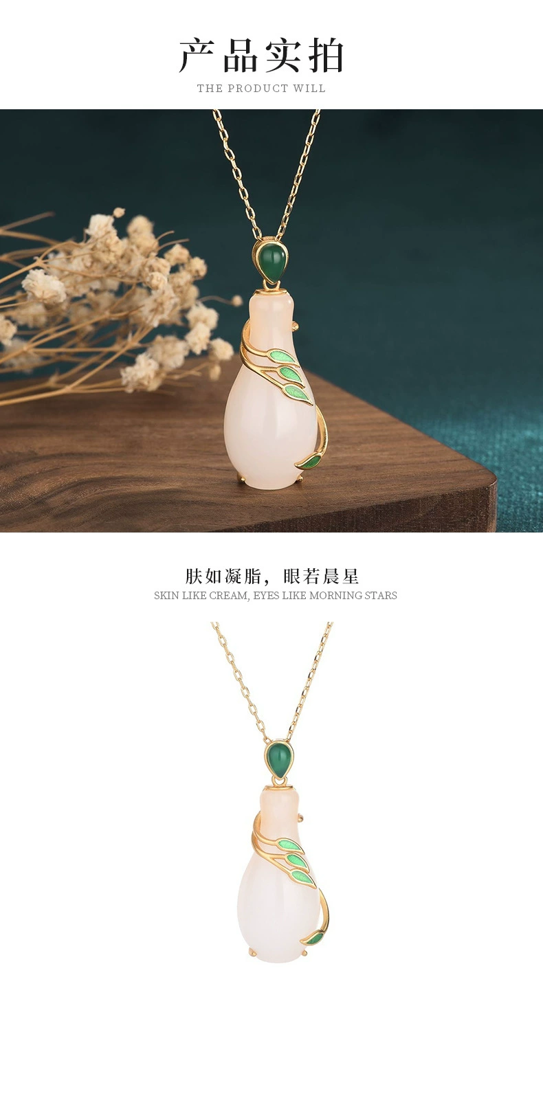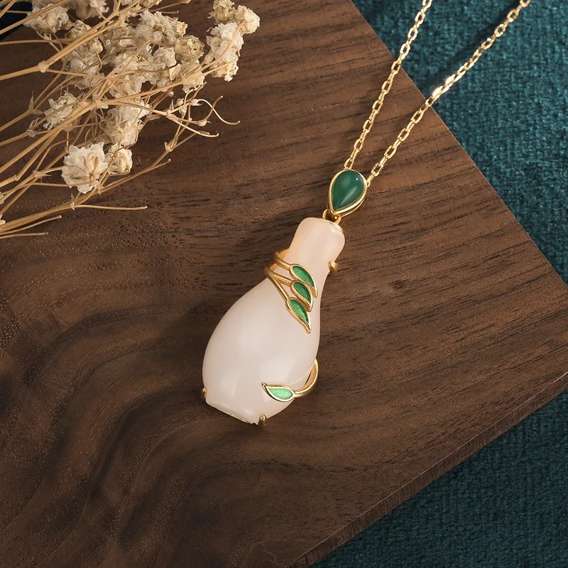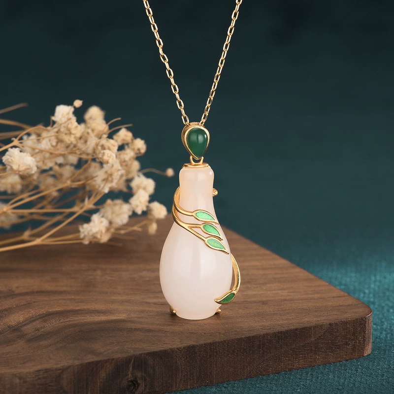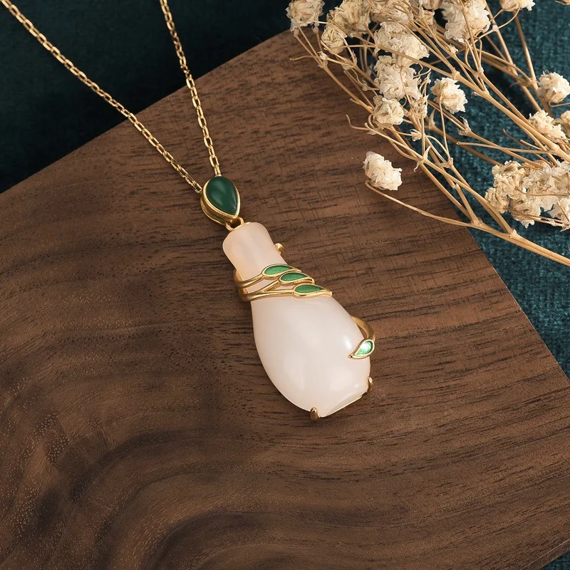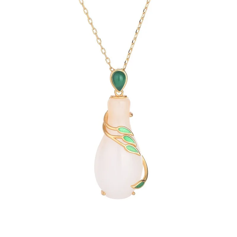 Винтажная эмалированная подвеска с белым нефритом в китайском стиле с инкрустированным золотом