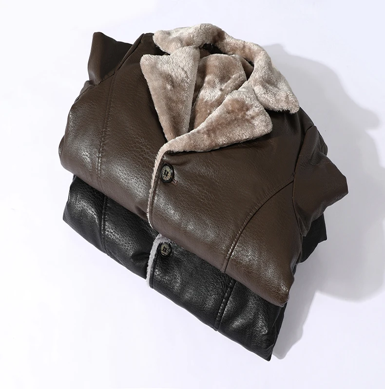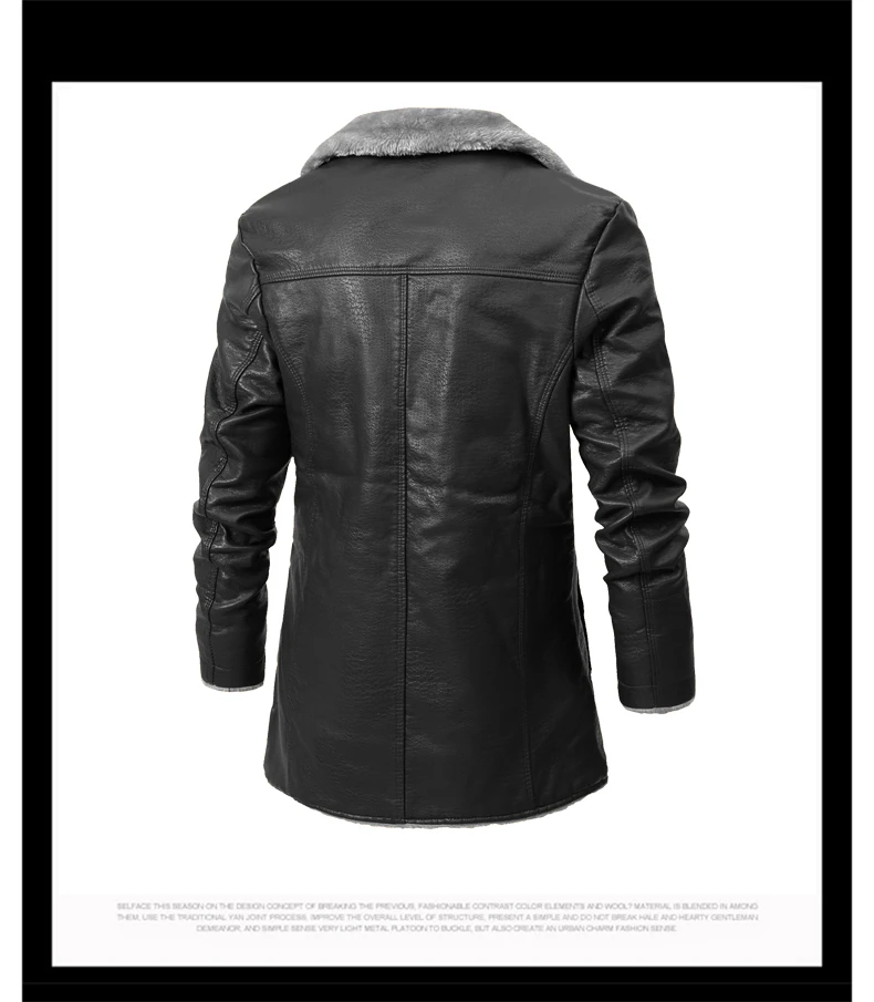 Новая мужская зимняя кожаная куртка с отворотом, флисовая Байкерская кожаная куртка, Мужская деловая Повседневная Длинная Куртка из искусственной кожи, брендовая одежда
