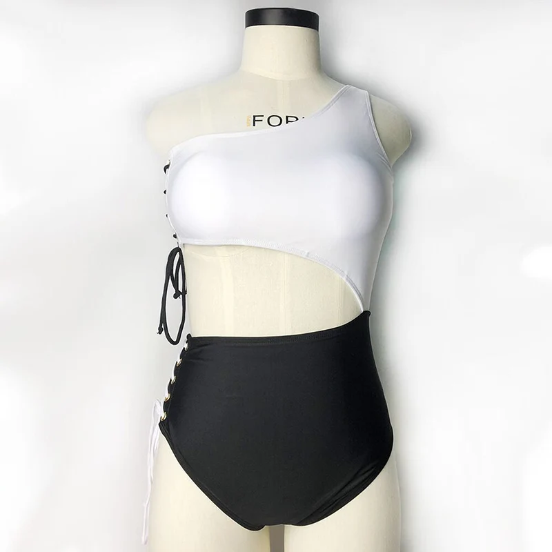 Купальник на одно плечо, женский купальник, дизайнерский купальный костюм, бандажные цельные костюмы, сексуальная пляжная одежда, цветные бикини в стиле пэчворк