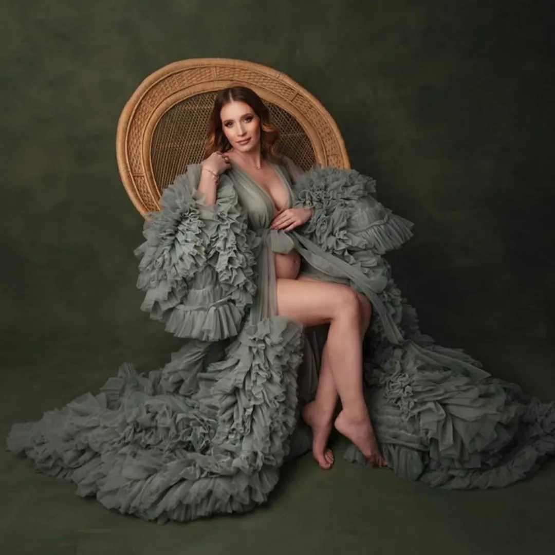 Пышные платья с длинным рукавом для беременных женщин с оборками Тюлевое женское платье для фотосъемки вечернее платье с вышивкой платья для фотосъемки