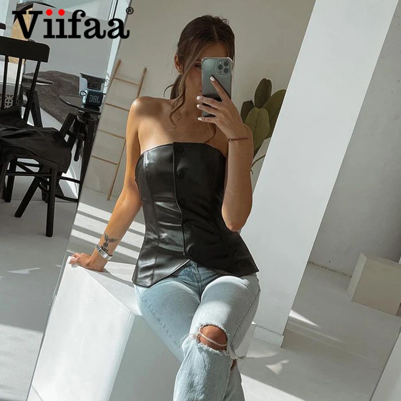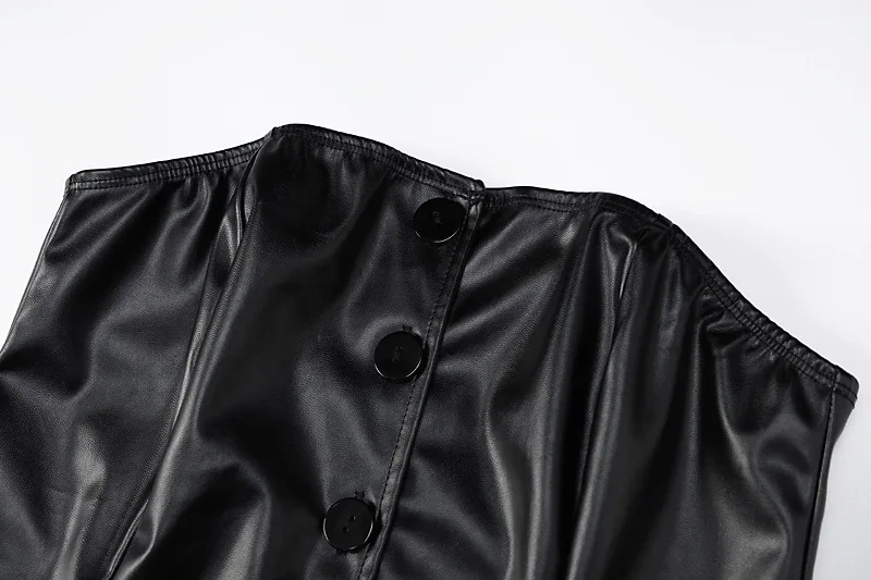Viнастроа без бретелек на пуговицах укороченные топы из черной искусственной кожи сексуальные женские с открытыми плечами одежда для гранж вечерний Корсет Топ