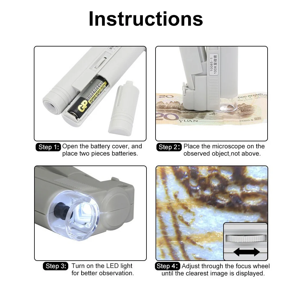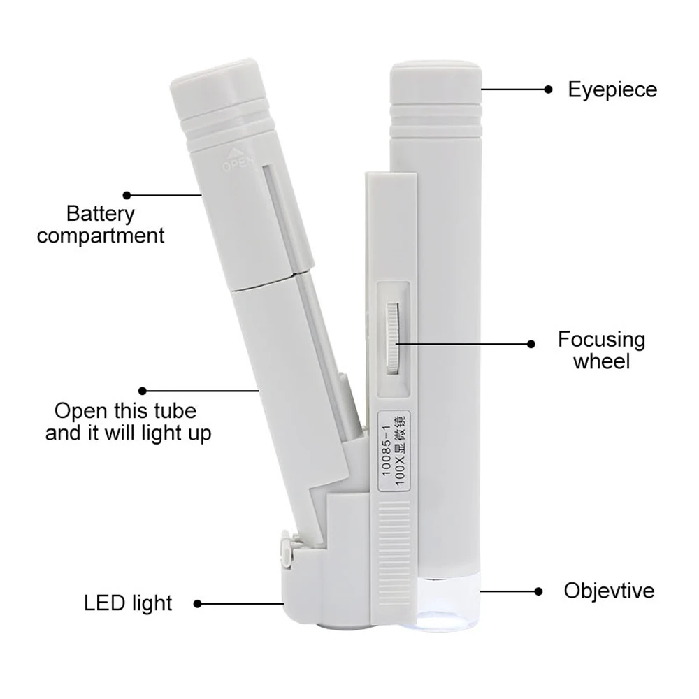 Детский микроскоп с подсветкой, зум 100х, обучающая игрушка для детей и студентов, миниатюрный Карманный Портативный монокулярный Биологический микроскоп
