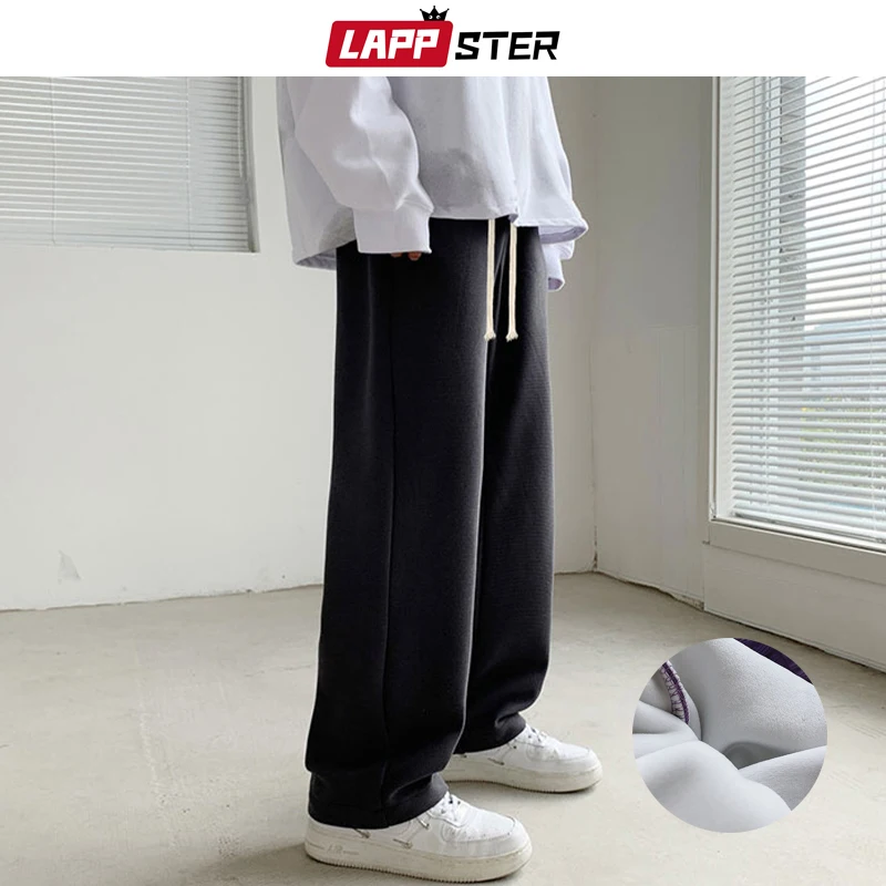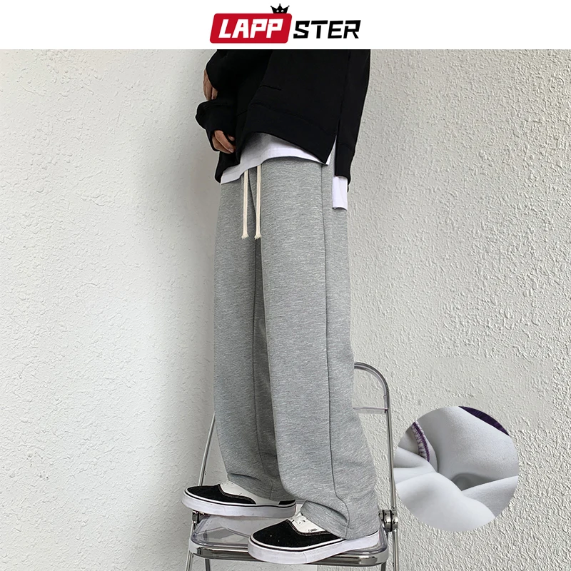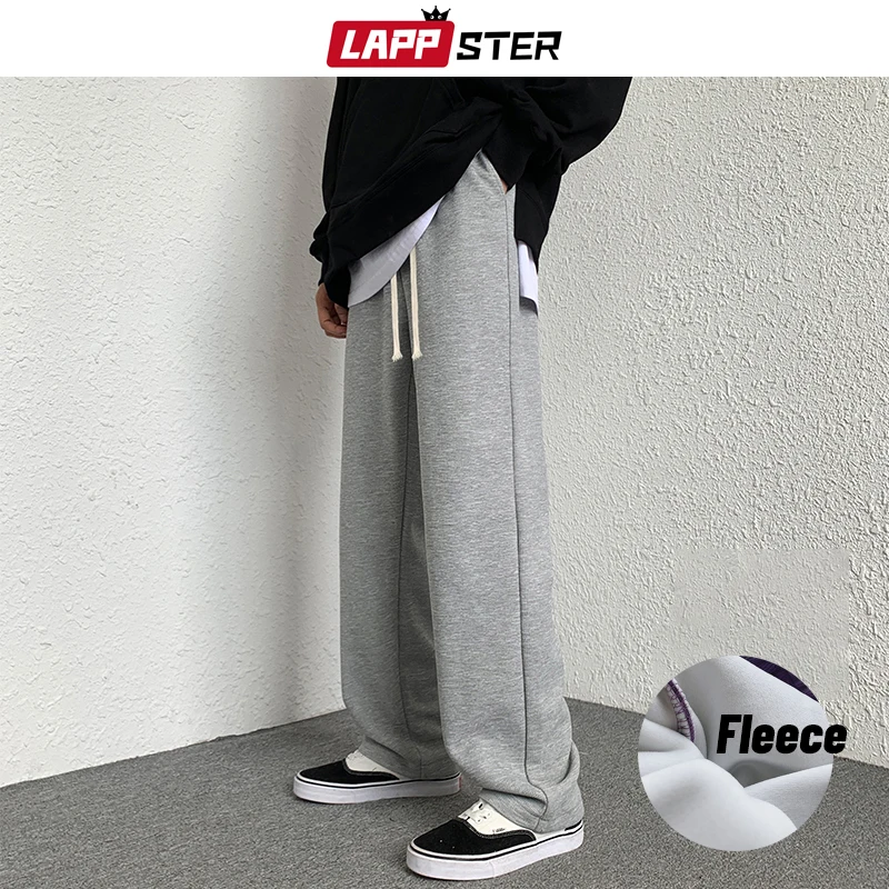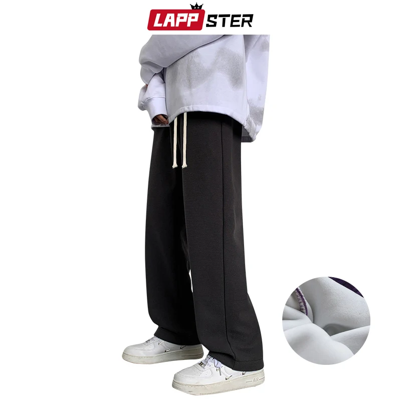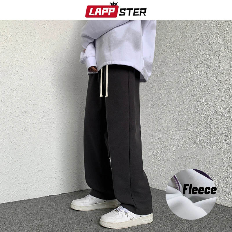 Мужские флисовые мешковатые брюки LAPPSTER, 2022, мужские однотонные черные спортивные брюки в стиле Харадзюку, мужские повседневные модные штаны для бега в Корейском стиле