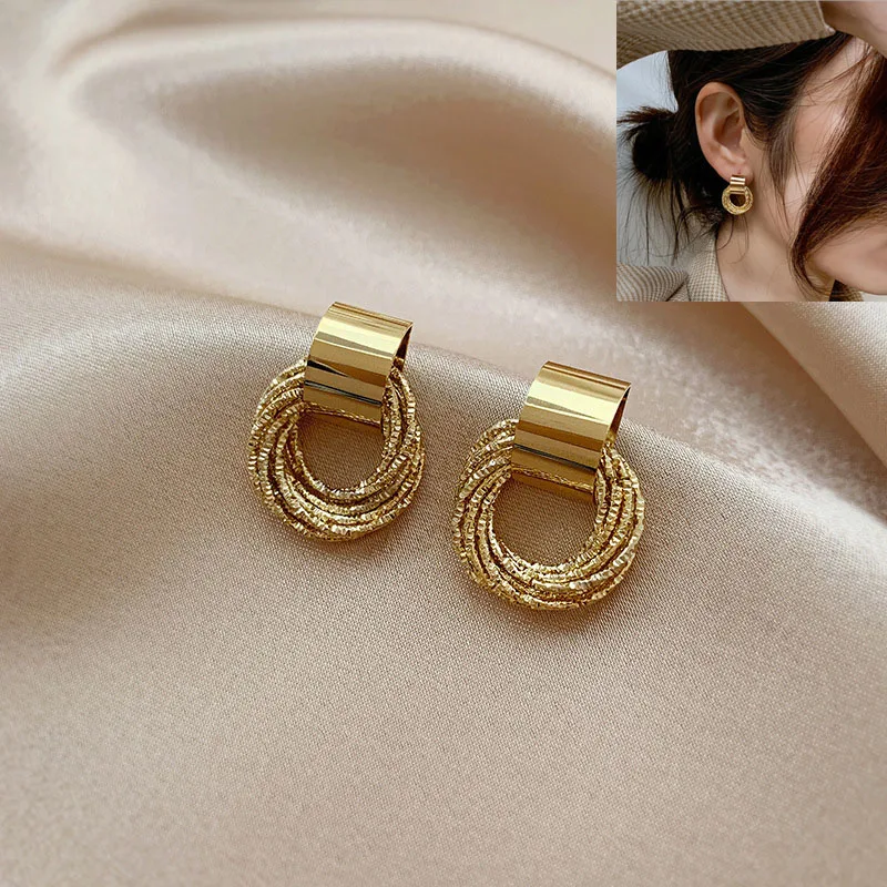 Ретро Металлические золотые несколько маленькие круглые серьги с по...