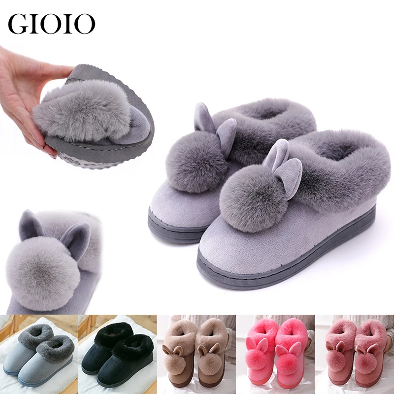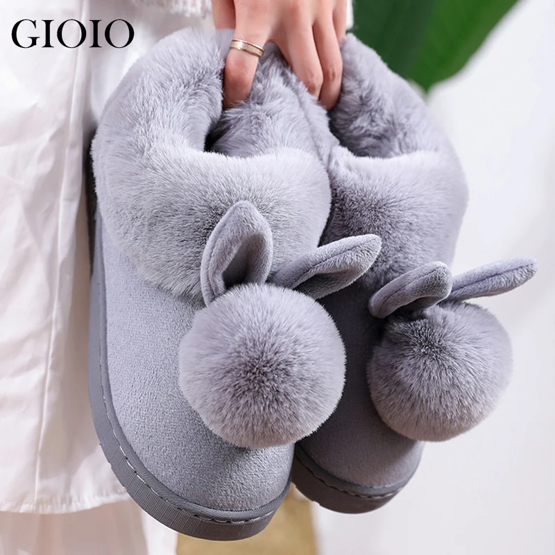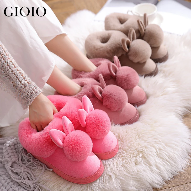Новинка 2021, модные зимние хлопковые тапочки, домашние тапочки с кроличьими ушками, зимняя теплая женская обувь, Симпатичные плюшевые сандалии