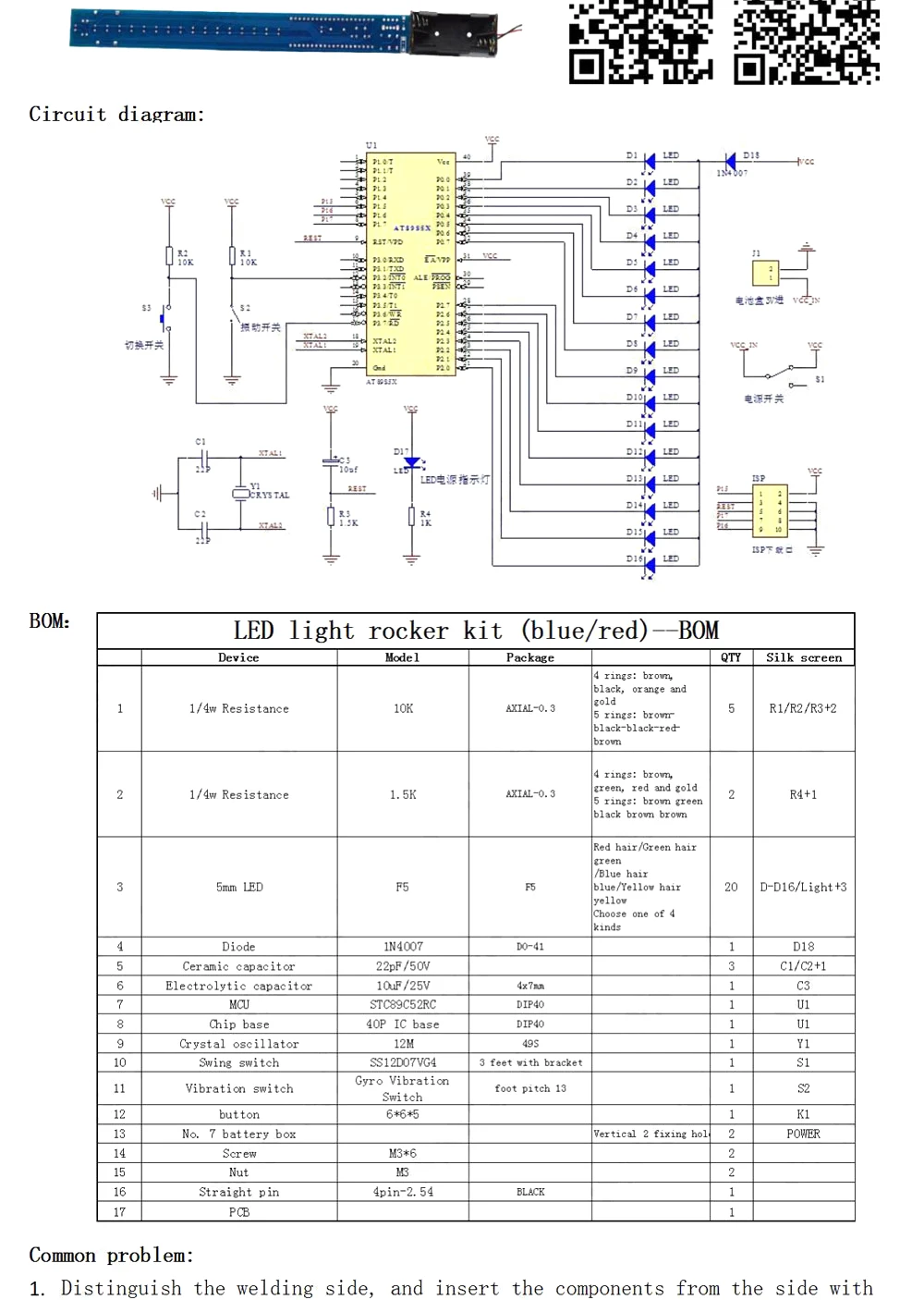 16 бит POV светодиодный Stick светильник Rocker Diy Kit shake STC89...