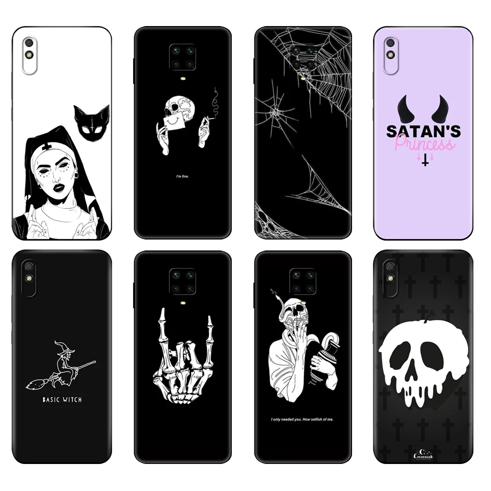 Черный чехол из ТПУ для Xiaomi Redmi 7A, 8, 8A, 9, 9A, 9C, чехол для Redmi Note 8T, 8 Pro, T, Note 9, 9S, 9 Pro, чехол готический с ведьмой, сатаной