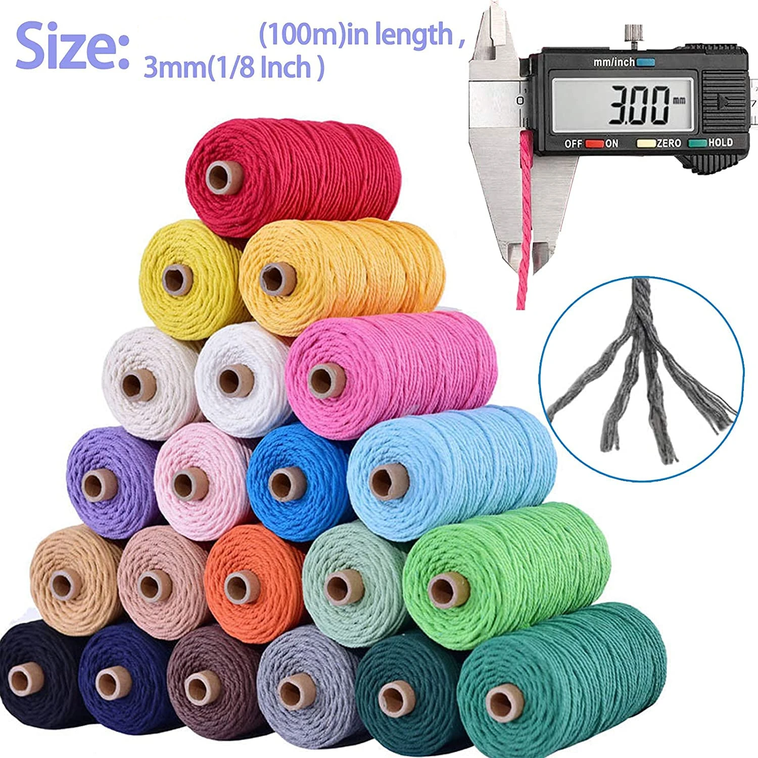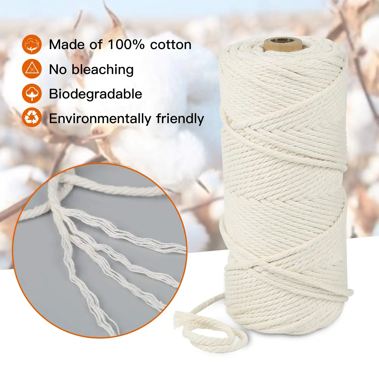 Шнур из натурального хлопка, 3 мм, 110 ярдов, мягкий прочный цветной хлопковый шнур для макраме сделай сам, вязаный шнур, вешалка для растений, настенный Hangin