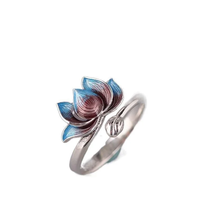 2021 оптовая продажа, новые модные серебристые ювелирные изделия с перегоревшим синим лотосом, эпоксидные двухцветные открытые кольца с цветком лотоса