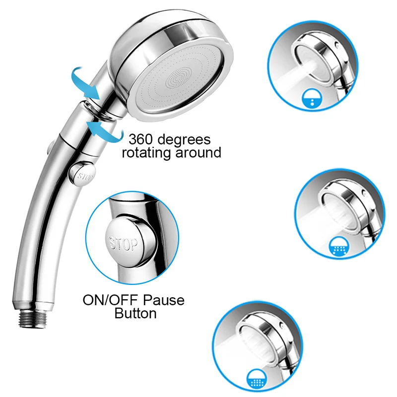 Регулируемая водосберегающая насадка для душа с 3 режимами вращения...