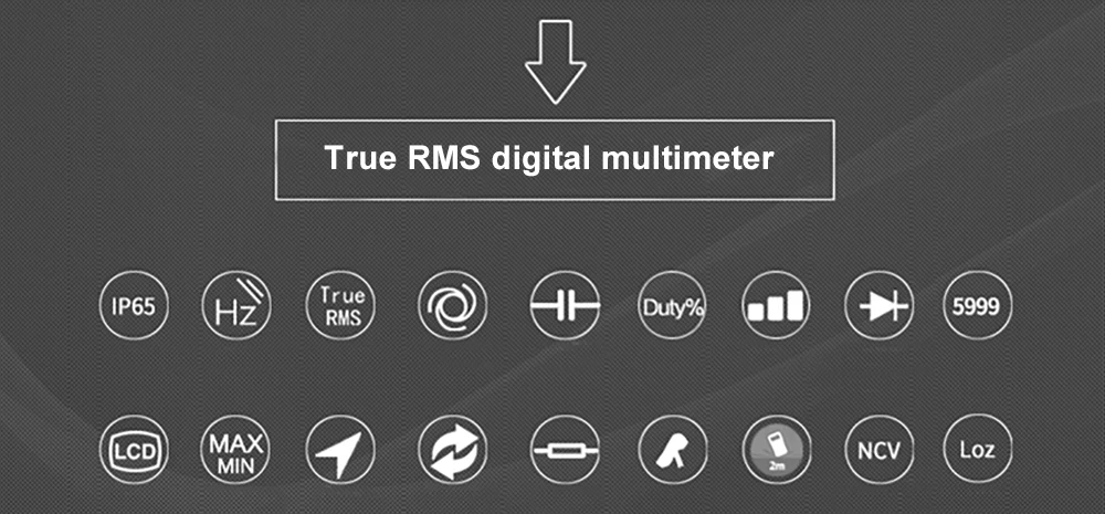 1. Параметры измерения сохранены после сброса питания2. IP65, 2 м защита от падения3. Измерение истинного значения/пикового значения4. Автоматическая подсветка5. Измерение тока 20A6. LoZ AC измерение
