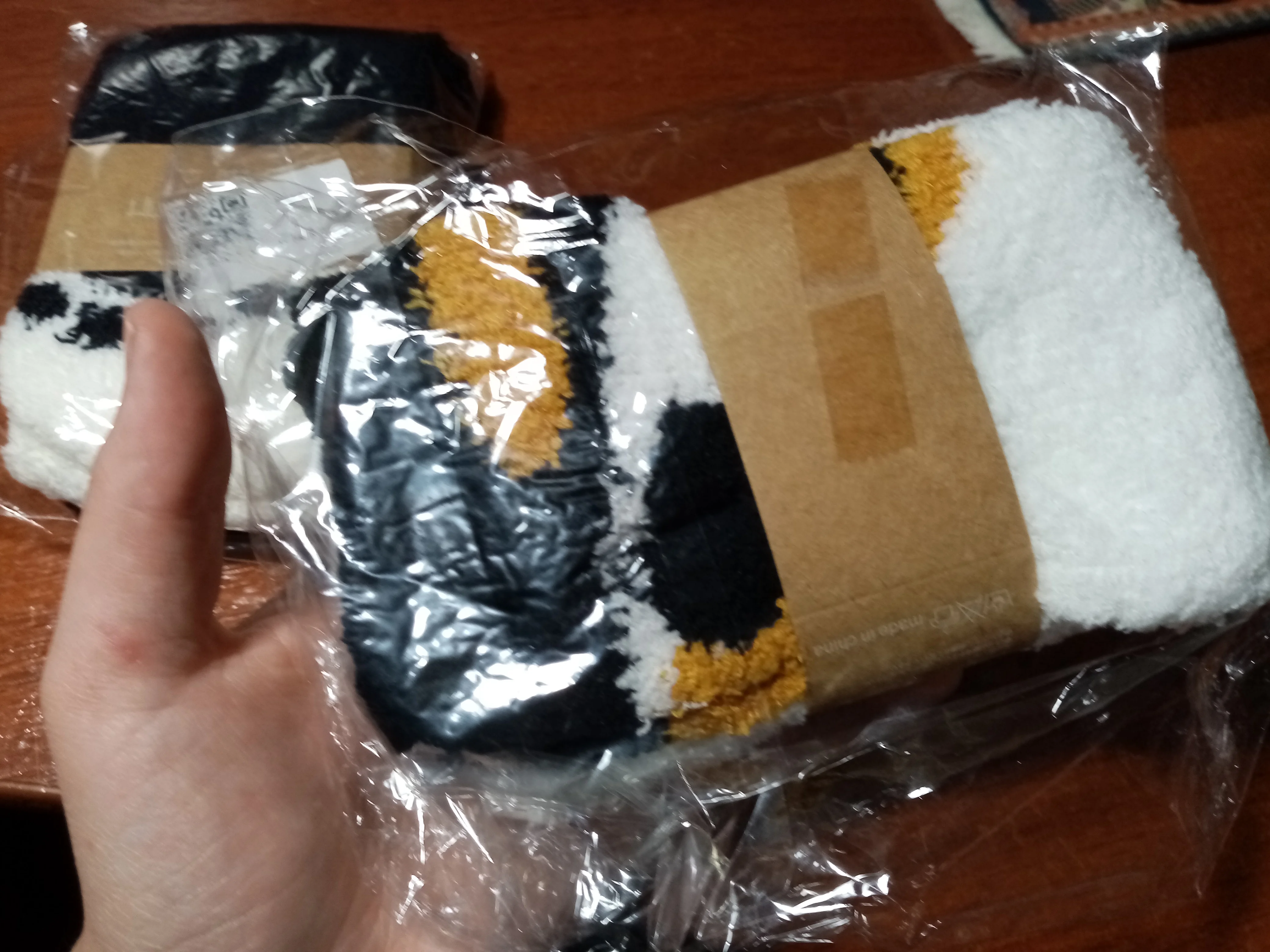Товар пришёл почти вовремя. Из минусов: очень не приятный запах, выпадали нитки. Из плюсов: приятно носить, очень милые и прикольные носочки :) Если не смотреть на минусы то всем советую