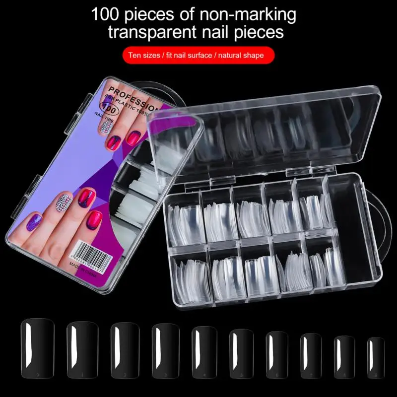 100 шт.кор. Накладка для ногтей, искусственный набор для ногтей, французская искусственная полупалка, прозрачный чистый цвет, ногти для творчества, дизайн ногтей
