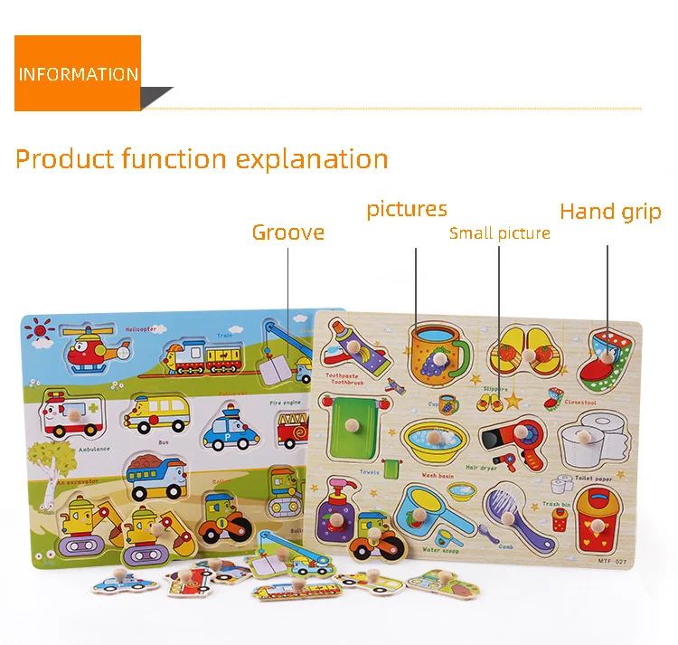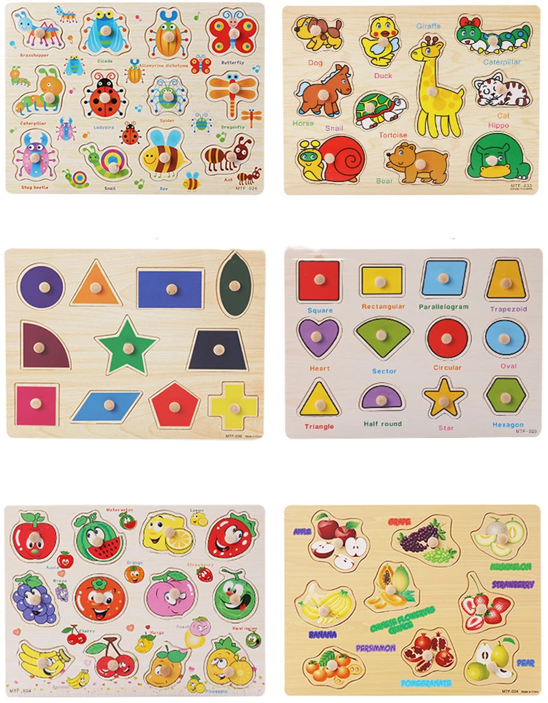Деревянные головоломки Монтессори, доски для захвата рук, игрушки, ...