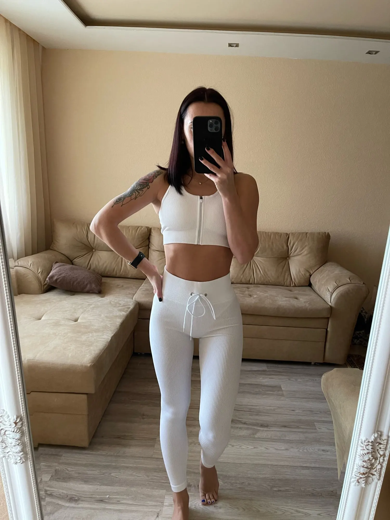 Леггинсы и верх грязные. Кроме того, это отличное качество! Настоятельно рекомендую! 166 см 65 кг Брали размер L Леггинсы ~ у меня есть около 100 см в бедрах и чувствую, что леггинсы немного свободные. Следует взять Размер M Все товары очень эластичные Найти больше информации/insta: s.h.eeee