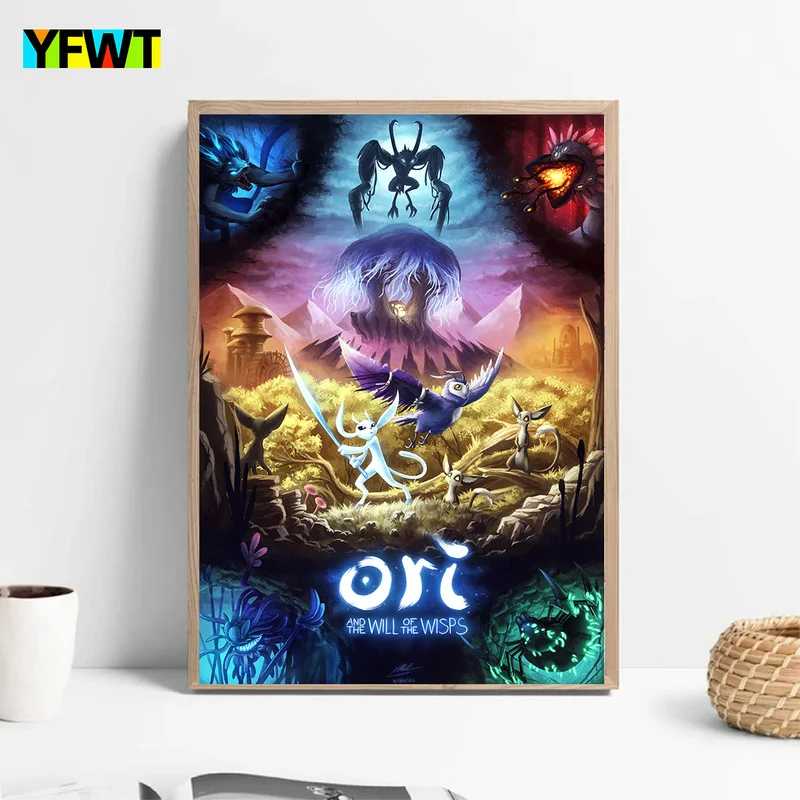 Постер на холсте с изображением ори и воли игры Wisps, настенный постер, художественный постер, украшение для дома, украшение игровой комнаты