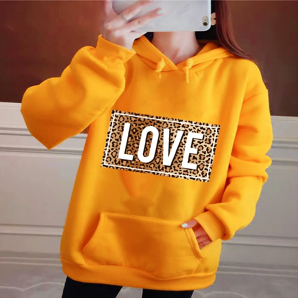 Женская толстовка с капюшоном, пуловер, свободная толстовка с большими карманами и длинным рукавом, топ, модные худи с леопардовым принтом для девочек, пуловер, Свитшот