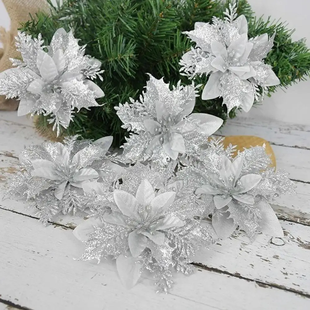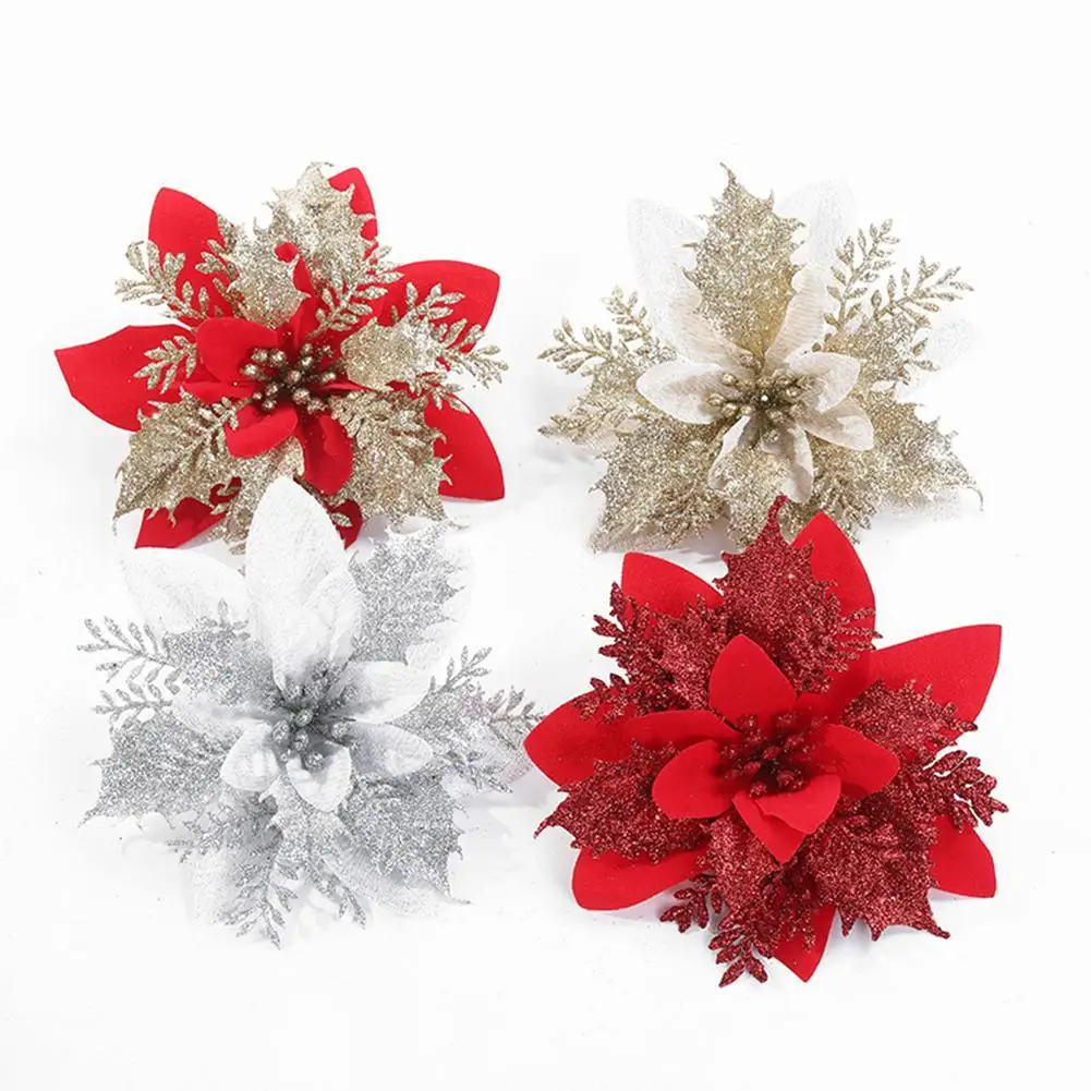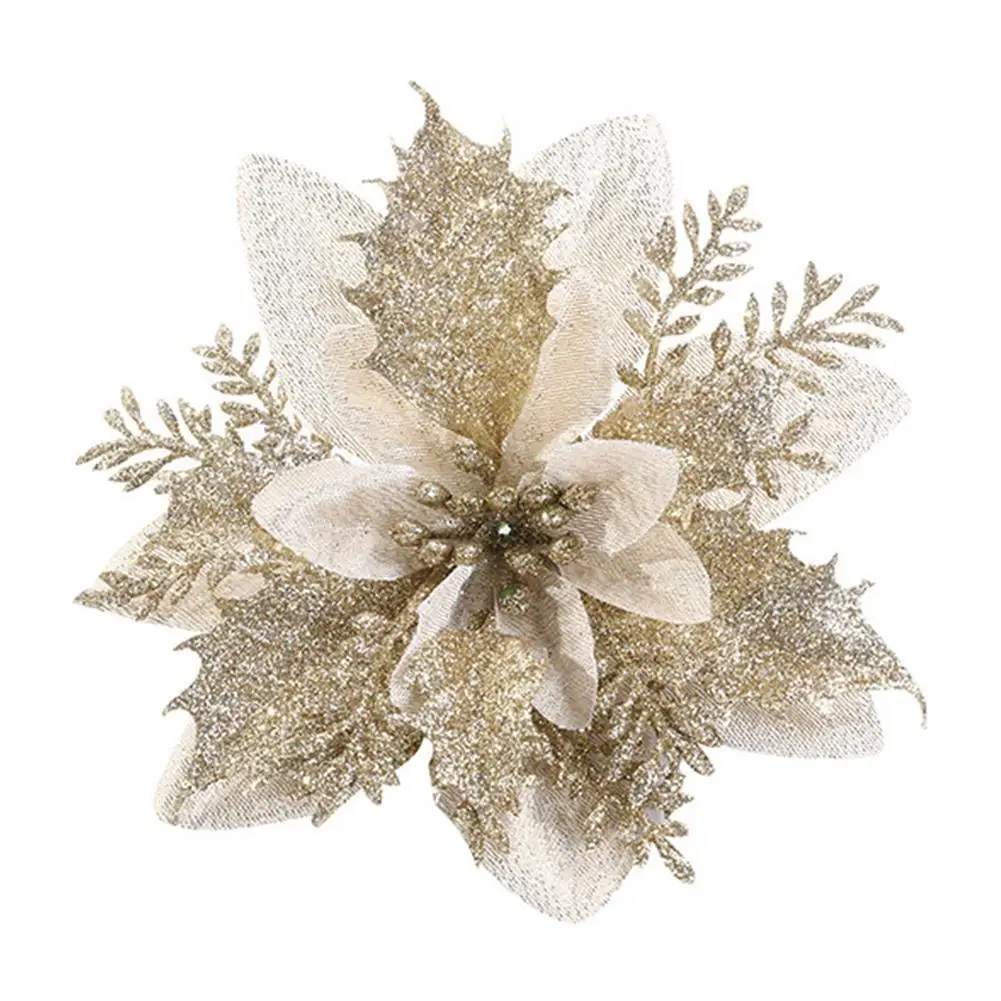 Рождественский день, Золотой Аристократический Рождественский цветок, имитация цветов, Рождественский венок, аксессуары, украшение для рождественской елки