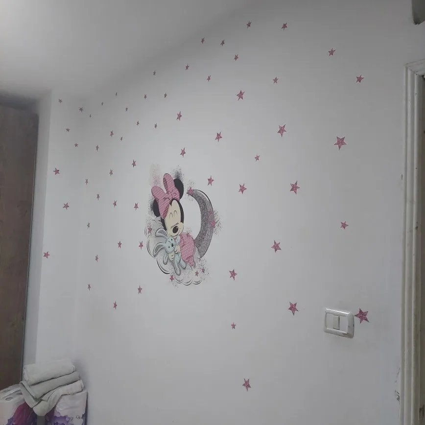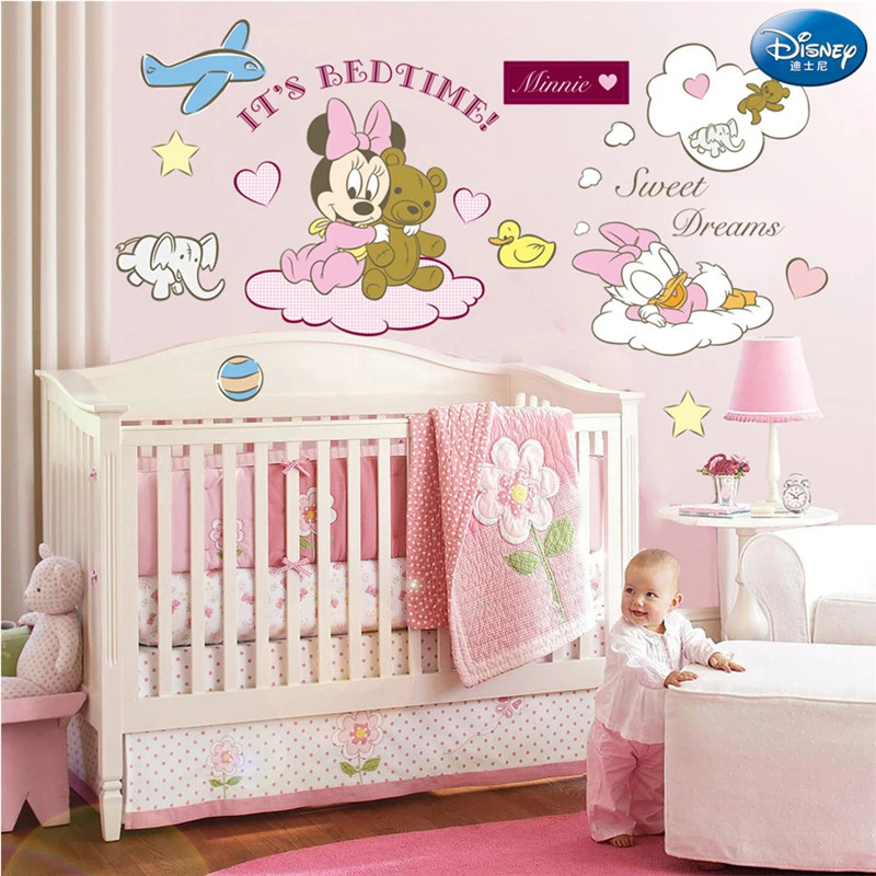 Наклейки на стену с Микки и Минни Маусом для детской комнаты, спальни, принцессы, малышей, виниловые наклейки, украшения для дома, обои для сна, Луны, детской