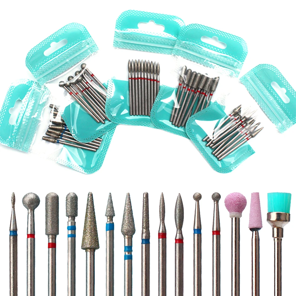 10 шт.компл. сверла для ногтей алмазные резаки для маникюра кутикулы фреза для педикюра фотоинструменты