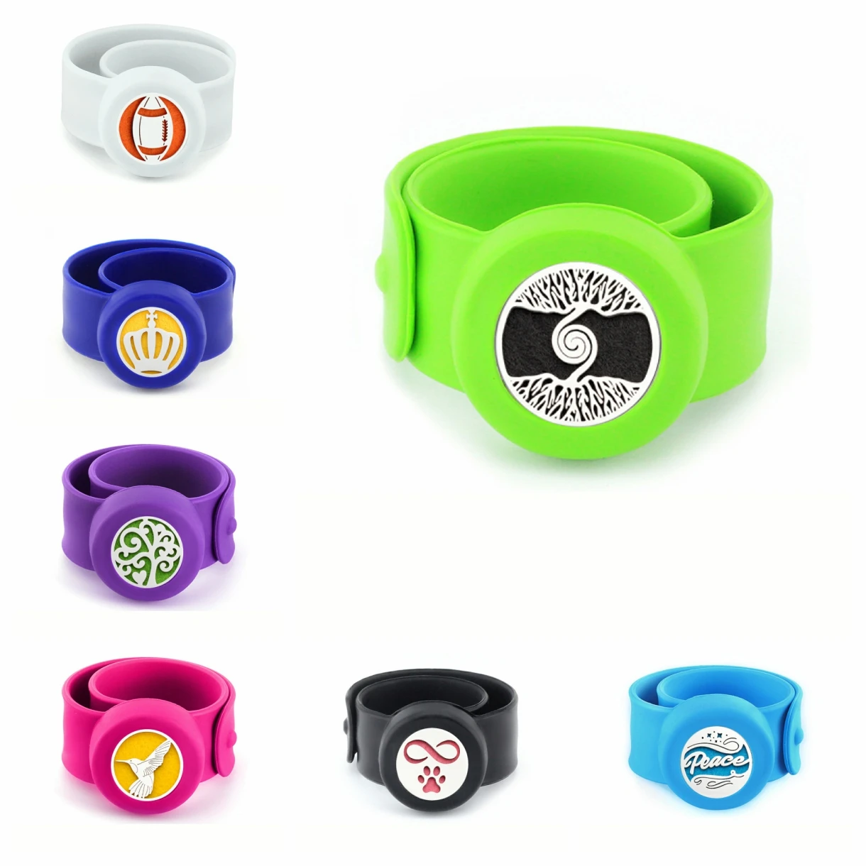 Браслет Slap для детей, браслет с диффузором эфирного масла, силиконовый регулируемый браслет для ароматерапии, 25 мм, медальон для духов