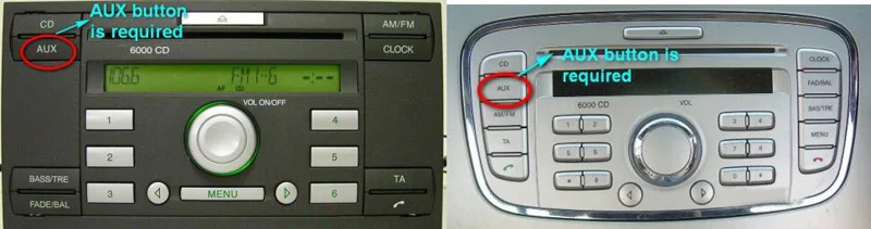 Описание товараЭто адаптер AUX in и 4 штыря для удаления (инструменты) для Ford 5000 CD, 6000 CD, 6006 CDC, а также для Ford Sony CDX-F214 Заводские установочные CD/радиоголовки.Адаптер работает с блоками, которые имеют ручку регулировки громкости, расположенную в центре устройства, и кнопку AUX в верхнем левом углу блока, как показано на фотографиях ниже: