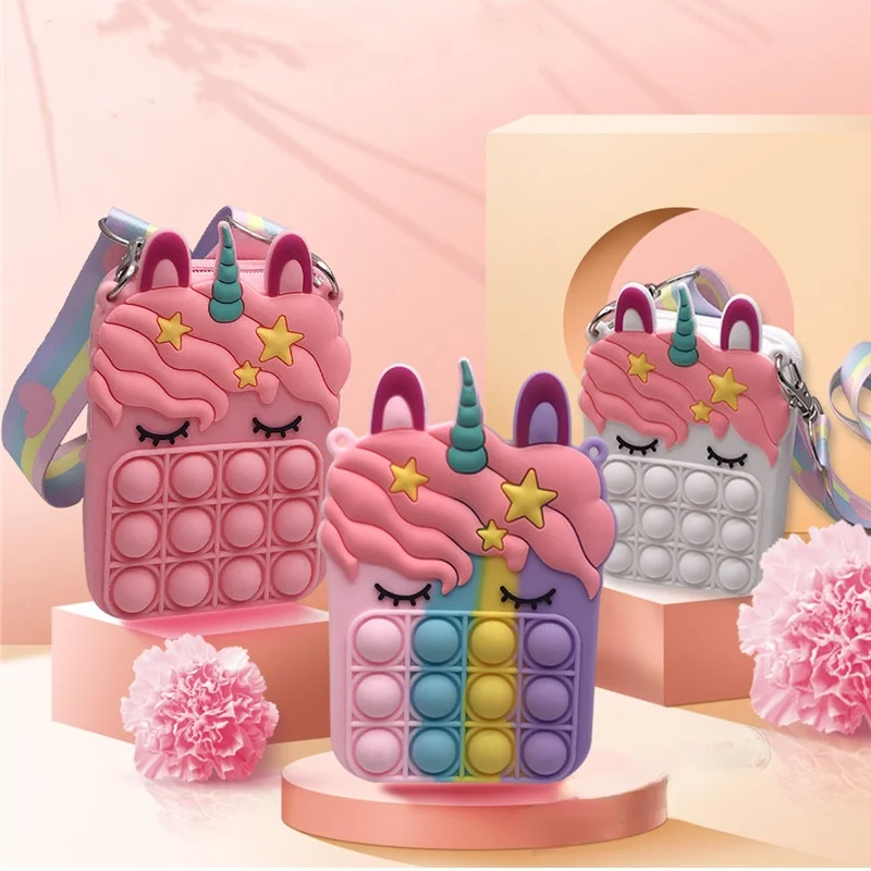 Детская Радужная сумка через плечо Pop It в виде единорога, игрушки...