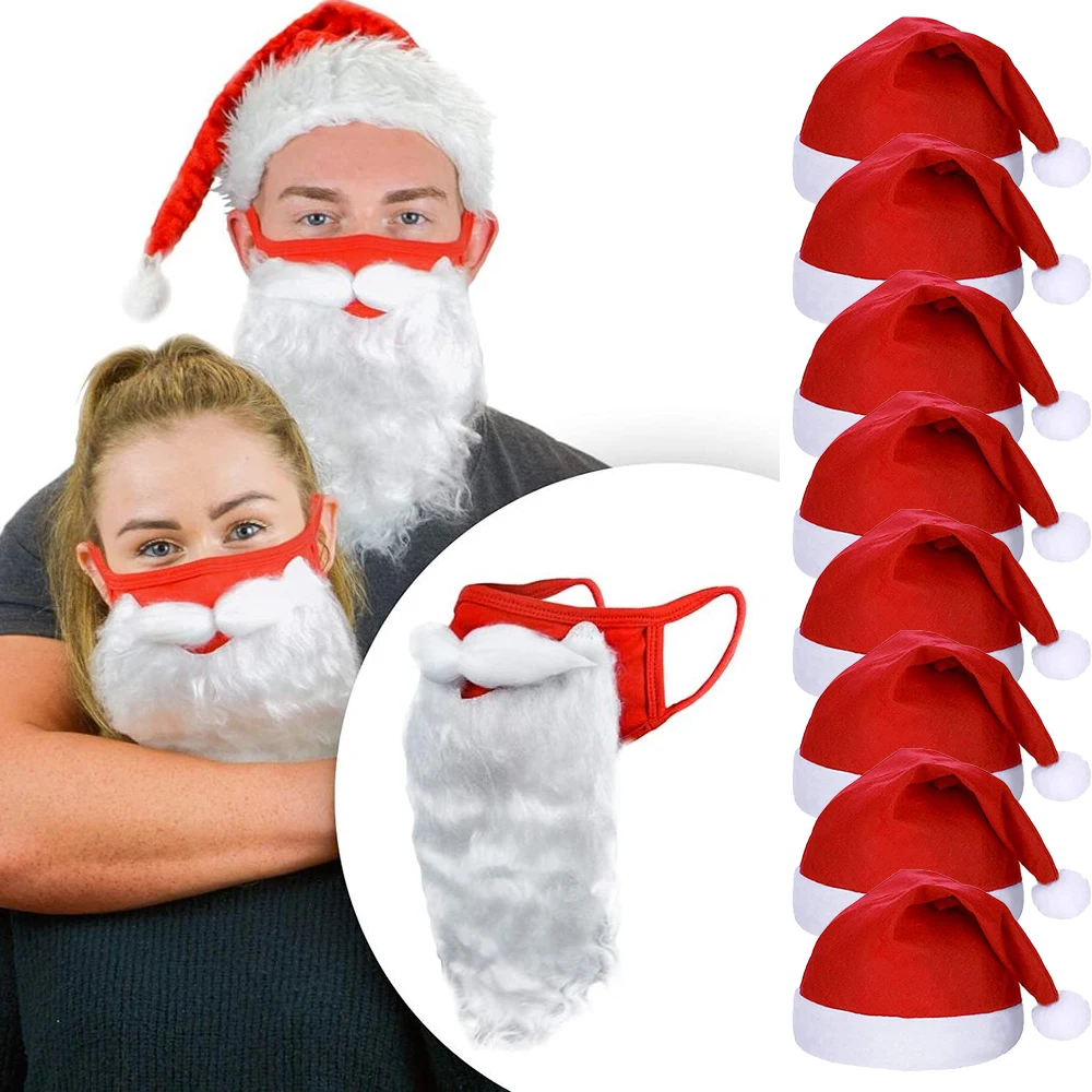 5 шт. Рождественская шапка + 3D маски Санта Клауса-бороды для взрос...