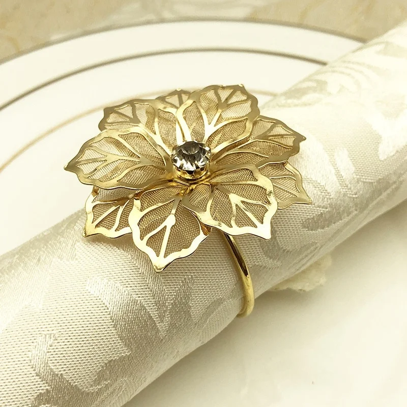 Золотая Пряжка для салфеток Eogoe, 12 шт., кольцо для салфеток с цветочным дизайном, металлический золотой держатель для столовых приборов, для отеля, свадьбы, вечеринки в западном стиле