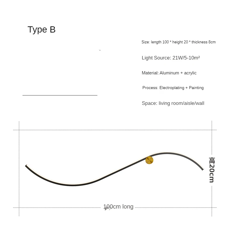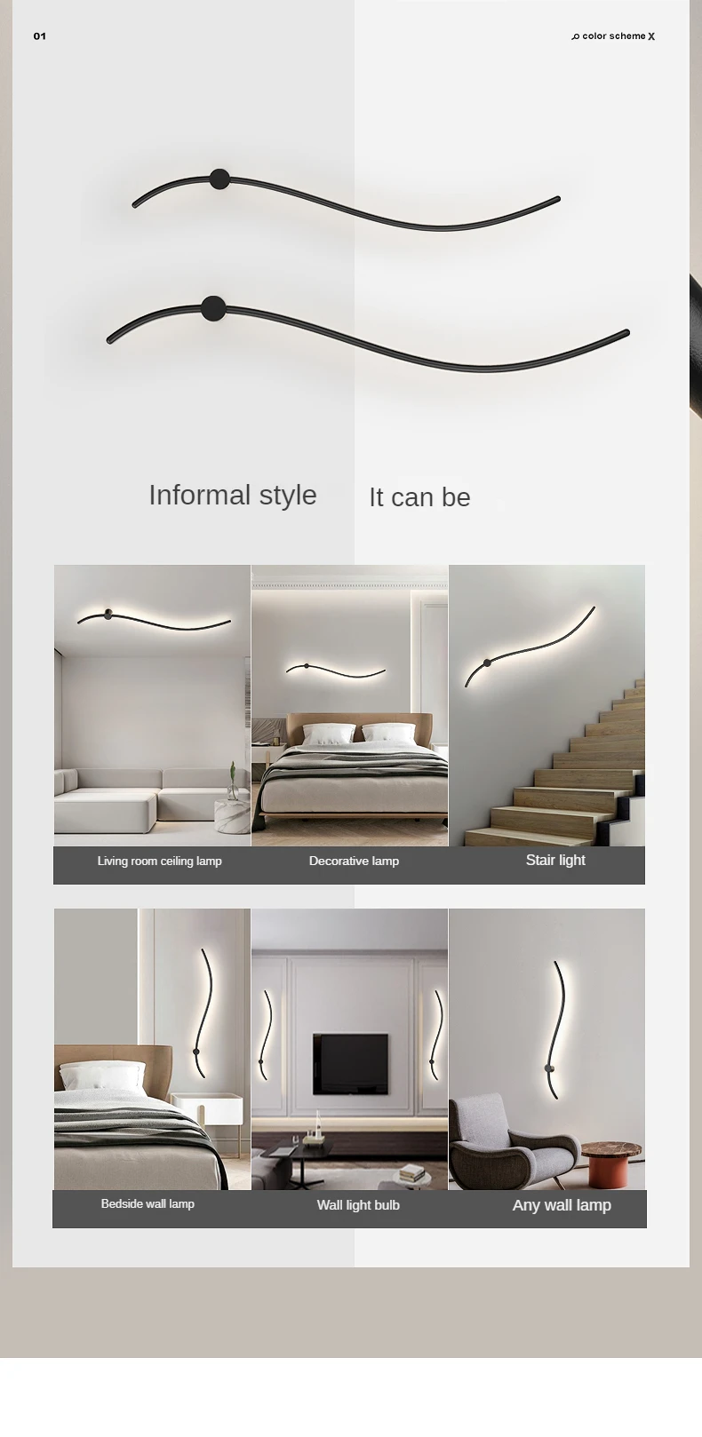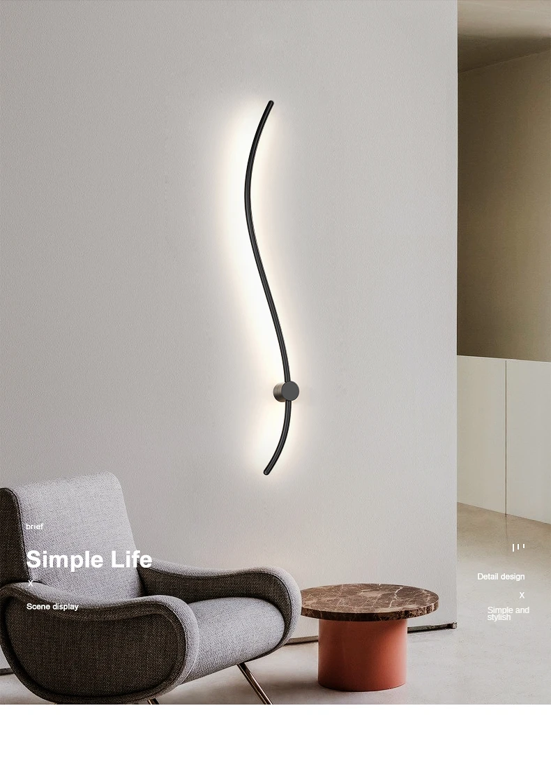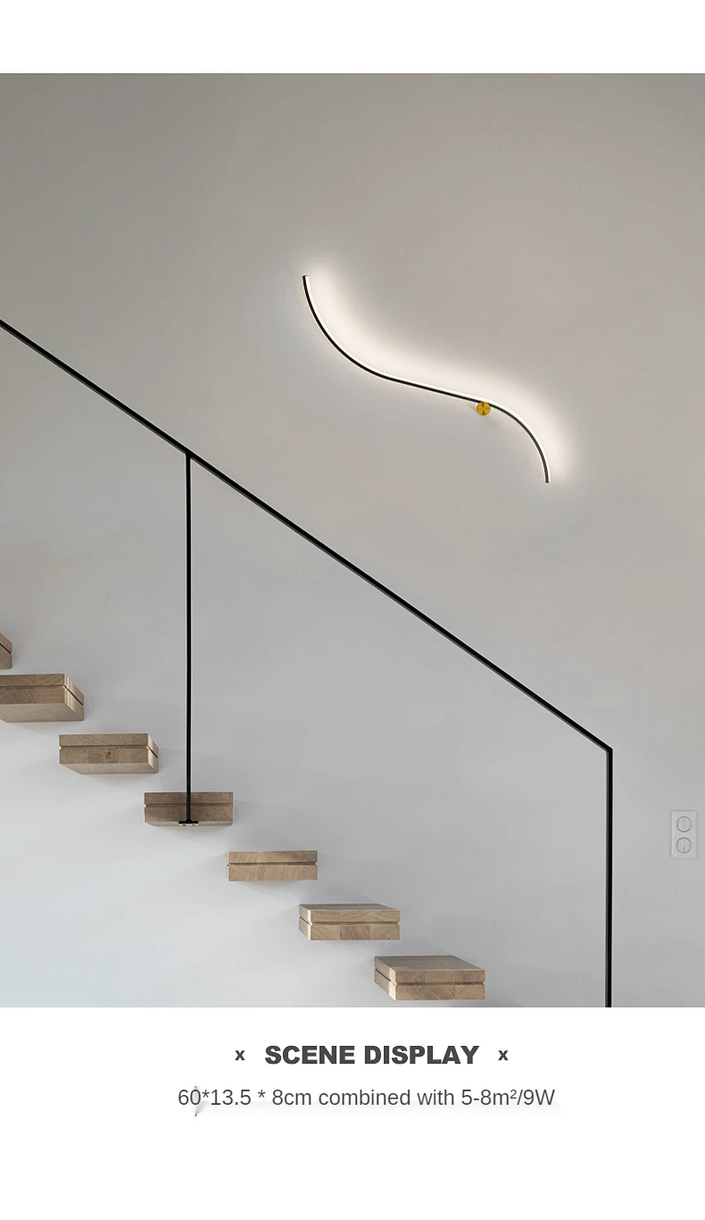 Длинная настенная лампа S-образной формы, скандинавский минималистичный прикроватный светильник для спальни, лестницы, гостиной, декоративный фон для стены светодиодный Светодиодная лампа