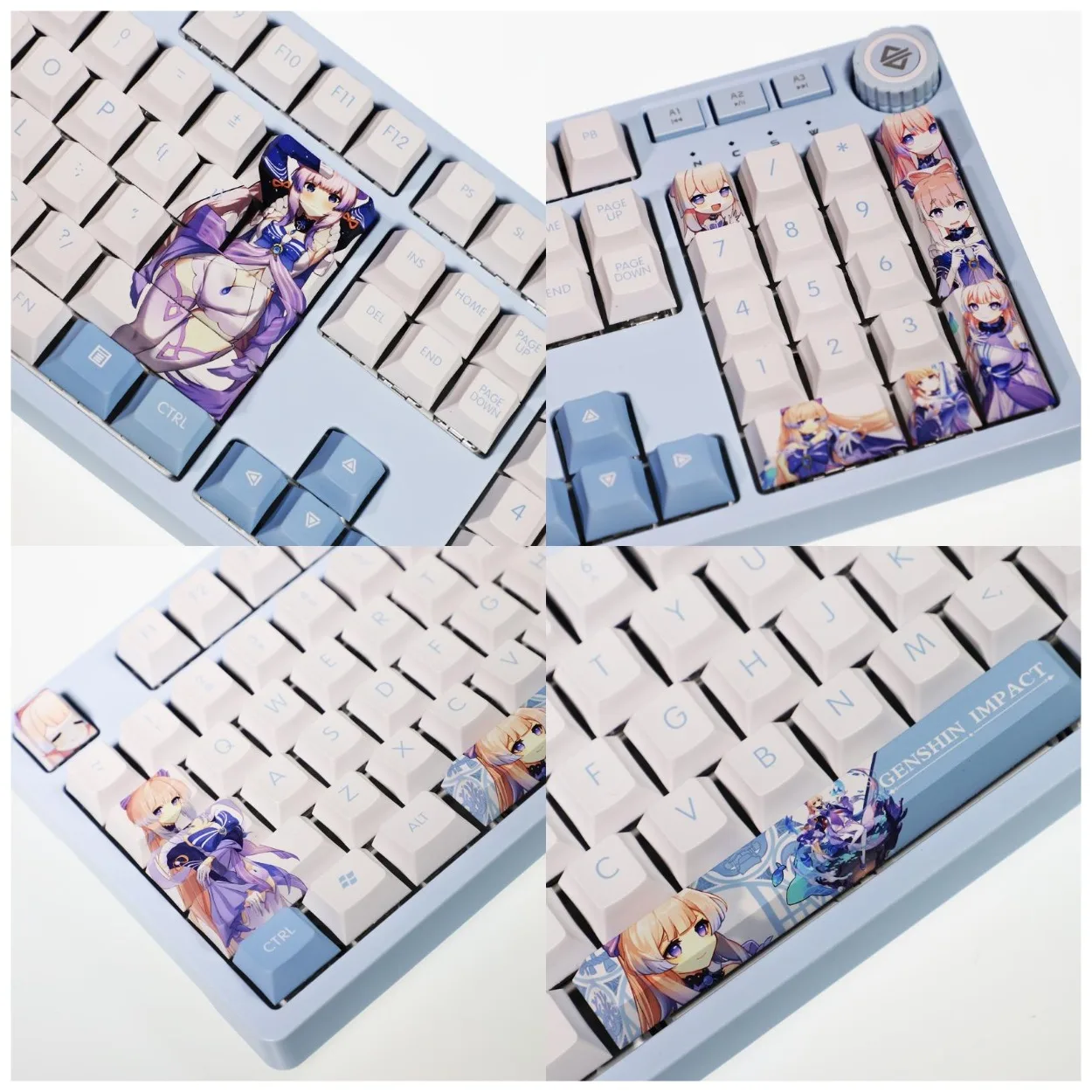 Клавиатура Genshin Impact Sangonomiya Kokomi Keybord PBT, игровой коврик для клавиатуры для косплея, механический тихий подарок, модные клавиши