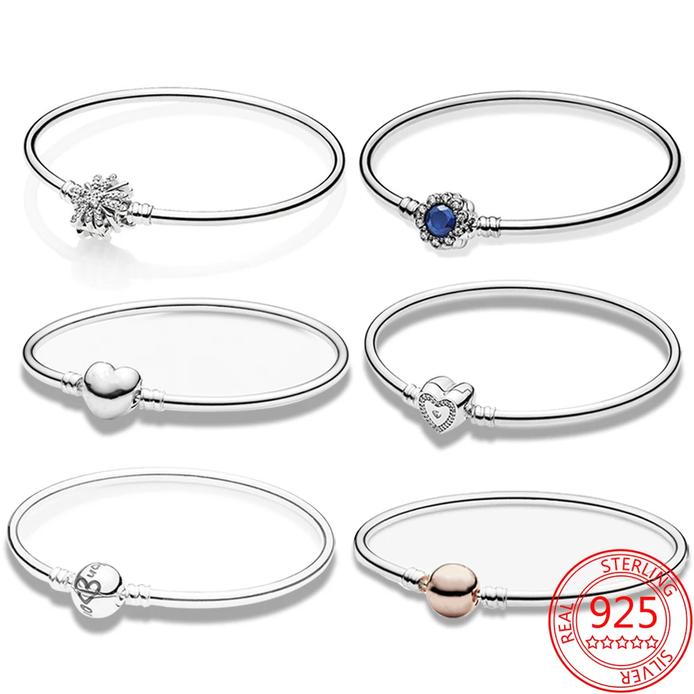 Оригинальный брендовый браслет из стерлингового серебра 925 пробы с классической жесткой пряжкой в форме сердца для девушек DIY браслет с подвесками ювелирный подарок