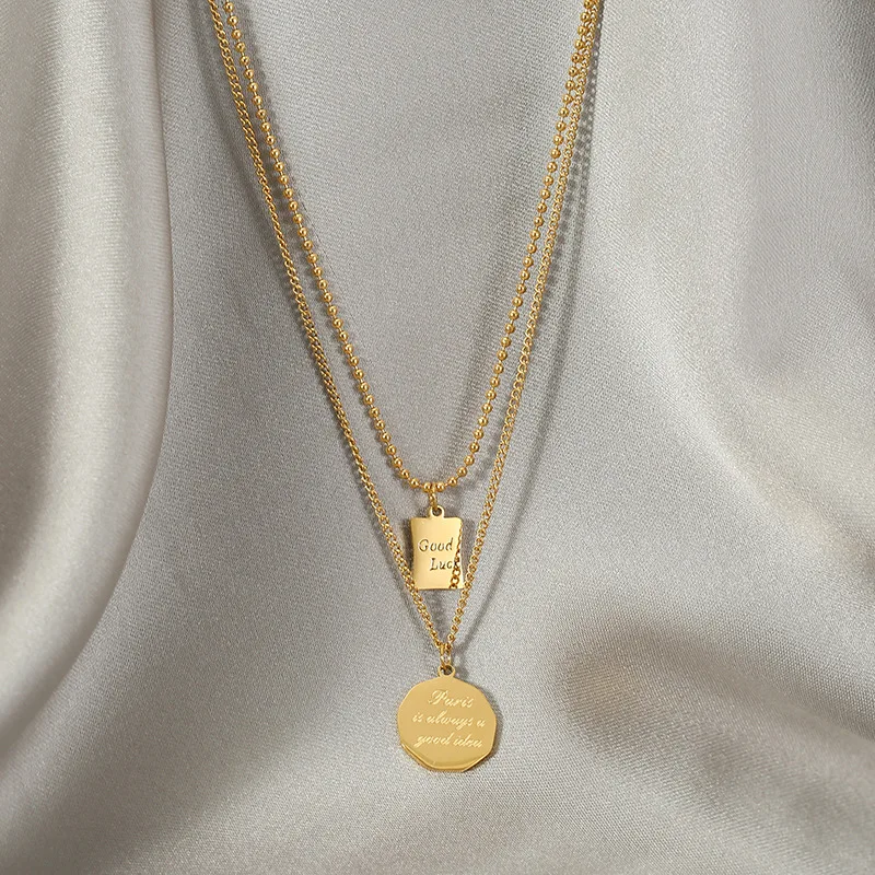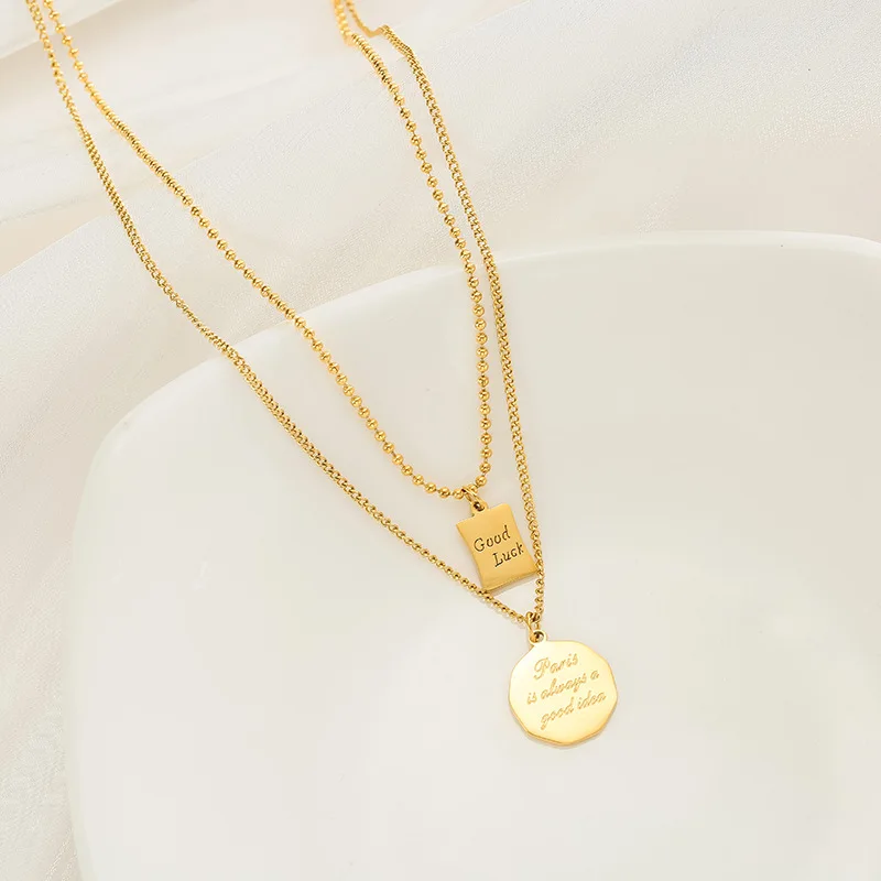 Цепочка-чокер женская из нержавеющей стали 316L, изящное Двухслойное ожерелье с кулоном в виде геометрической резьбы, шармы на удачу