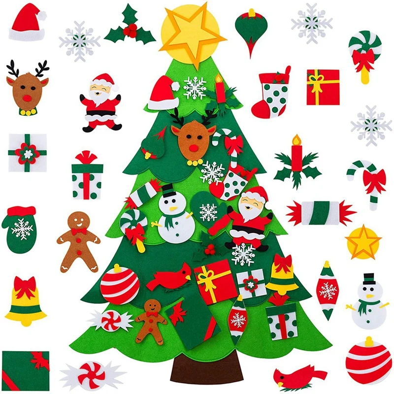Фетровая Рождественская елка сделай сам, светящаяся Новогодняя дверь, настенные украшения, Искусственная елка, детские игрушки, Рождественское украшение