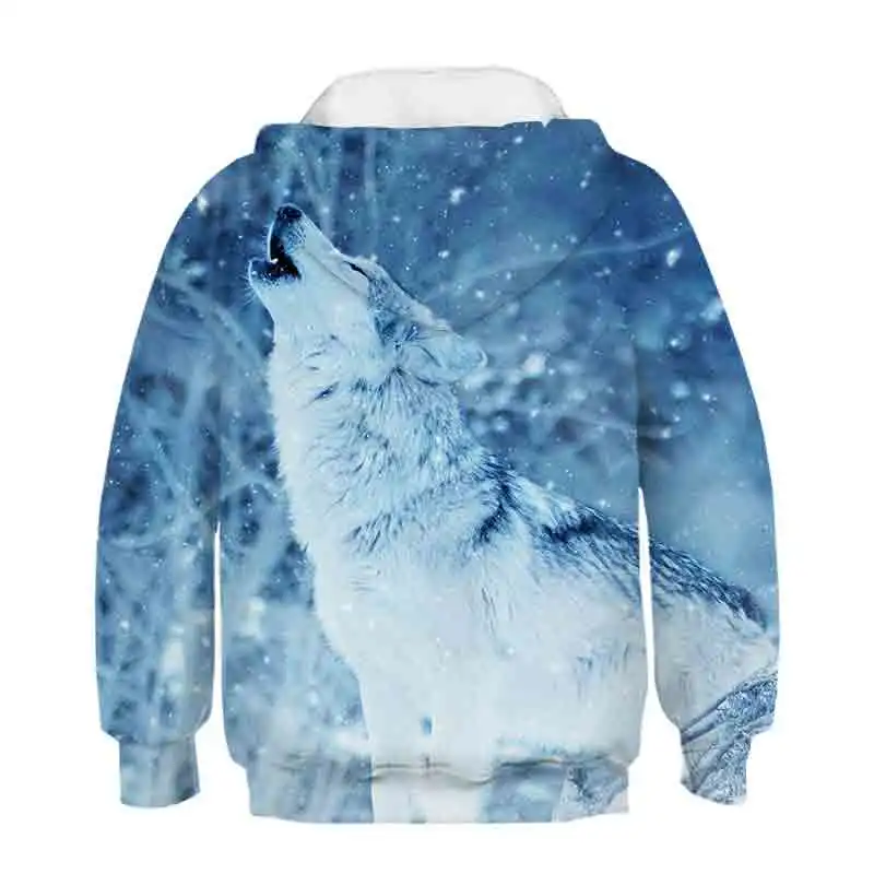 Детская толстовка с капюшоном и 3D-принтом волка, Осень-зима