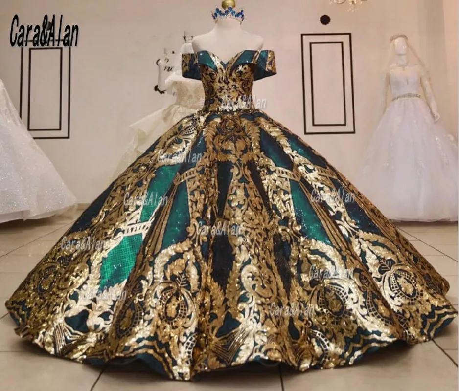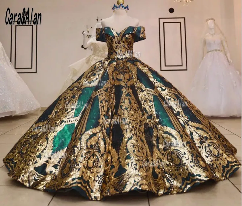 Новое мексиканское изумрудно-зеленое платье Quinceanera с блестками аппликация с открытыми плечами пышные милые платья для выпускного вечера 16 abiti da cerimonia