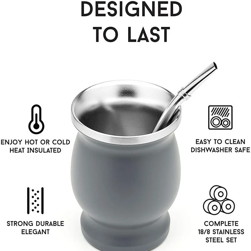 Характеристика: 304 пищевая нержавеющая сталь. Механический дизайн, удобный захват. Не легко ржаветь, теплоизоляция и защита от ожогов, и безопасно пить. Нескользящий дизайн, более стабильный корпус чашки. Вогнутая выпуклая конструкция корпуса чашки, равномерная сила, более противоскользящая. Гладкий рот, легко заваривать. Боковое кольцо из нержавеющей стали, большой диаметр, легко моется. Двойная функция изоляции. Включает в себя соломенную ложку и кисть. Легко пить и чистить.