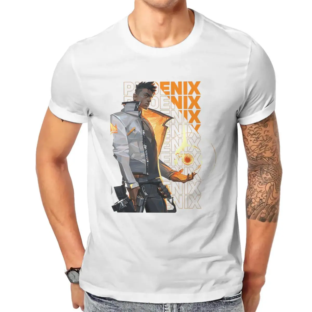 Футболка VALORANT с рисунком из игры Феникс, Мужская винтажная одежда с графическим рисунком, топы большого размера, хлопковая Футболка с круглым вырезом
