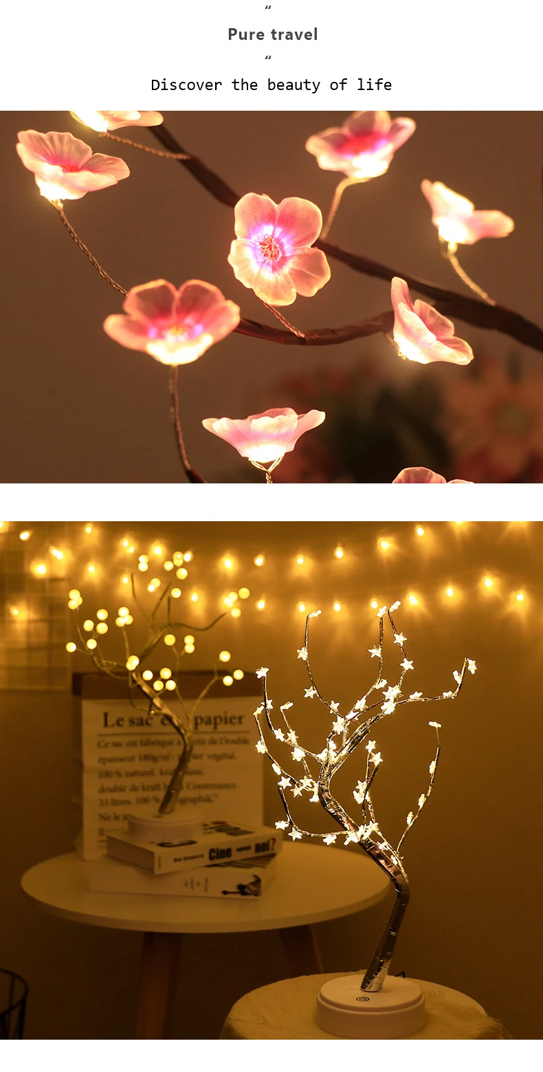 Ночной светильник в виде дерева, лампа бонсай из Гипсофилы, питание...