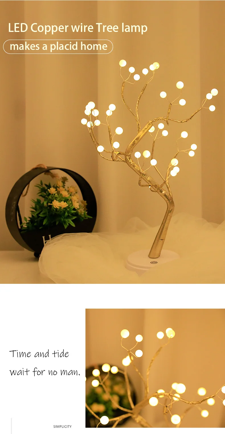 Светодиодная настольная лампа для дерева с медным проводом, гирлянд...