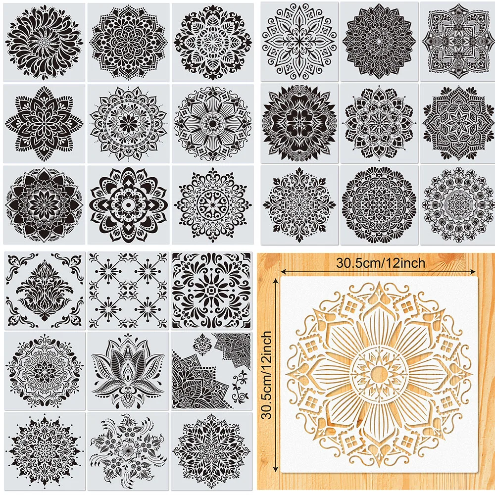 Трафареты 12 дюймов с изящной мандалой для стен, пола, плитки, покр...