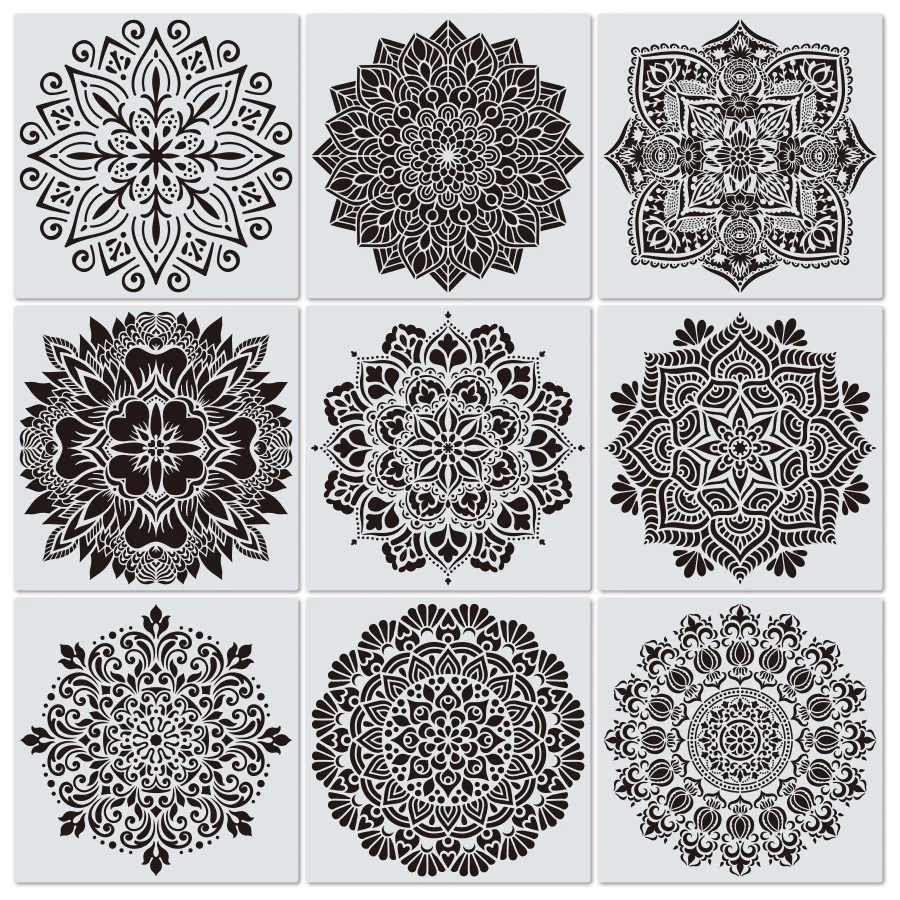 Набор трафаретов многоразовых нетоксичных для рисования мандалой, комплект из 9 предметов, 30 см, для пола, мебели, плитки, ткани