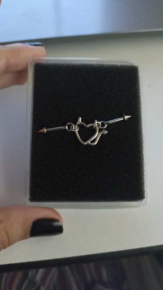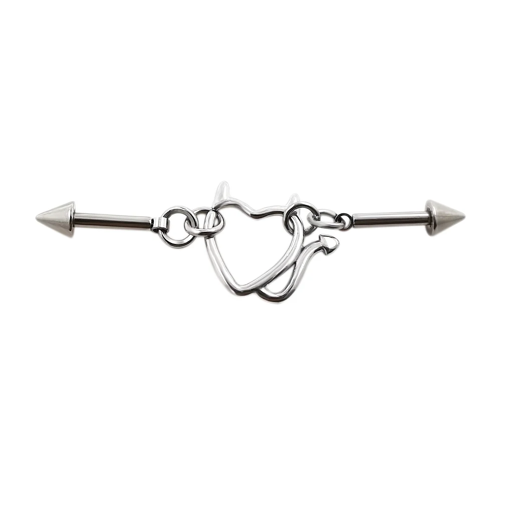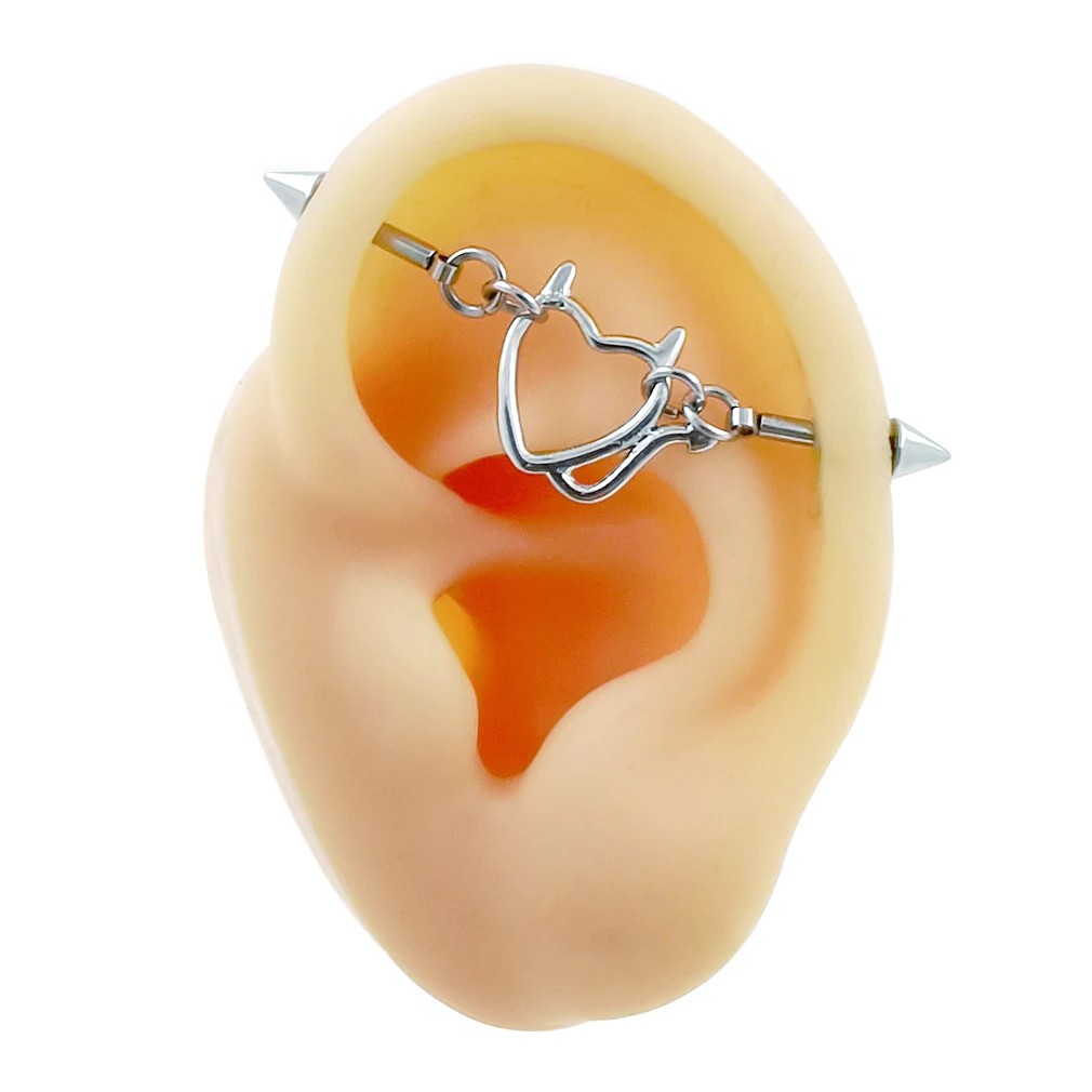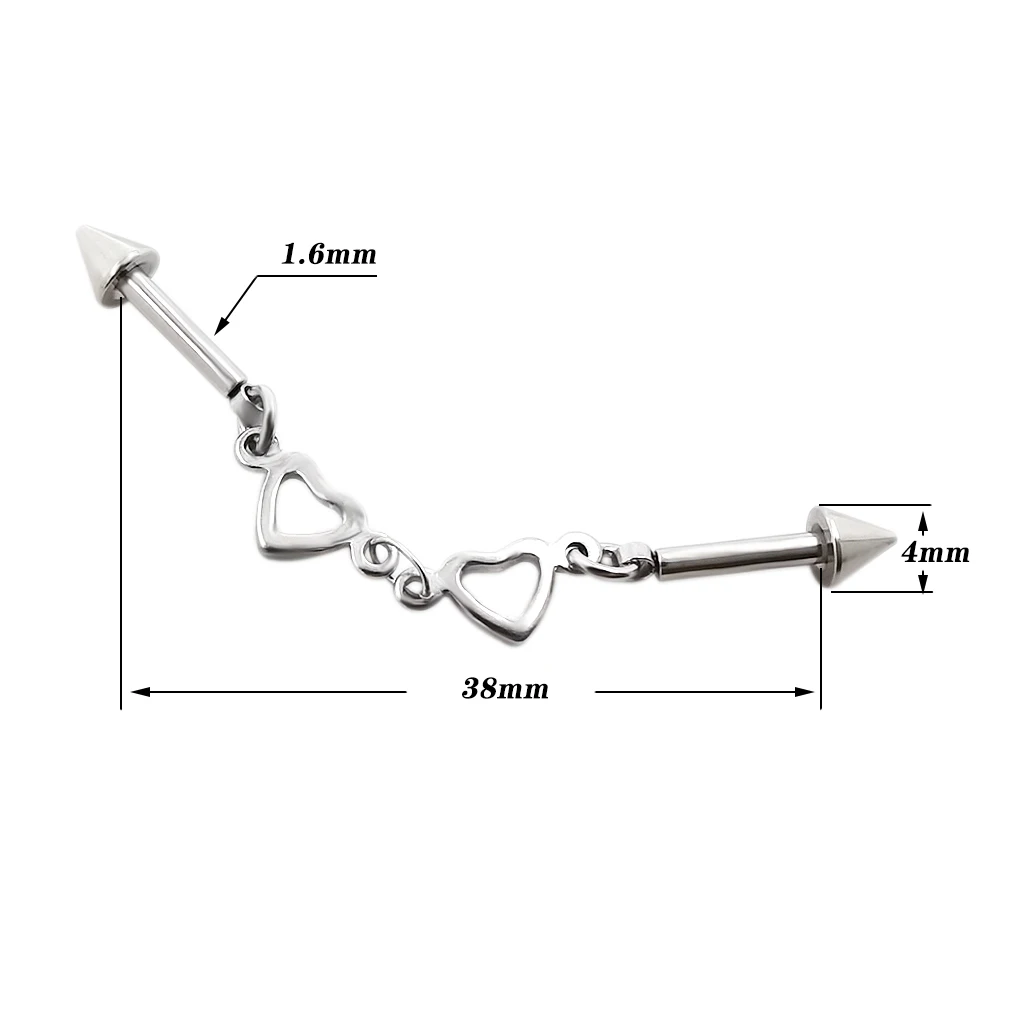 JHJT 14G сердце Промышленная Штанга Пирсинг из нержавеющей стали дьявол серьги, Надеваемые На ушной хрящ промышленная цепь пирсинг Бар Ювелирные изделия 38 мм