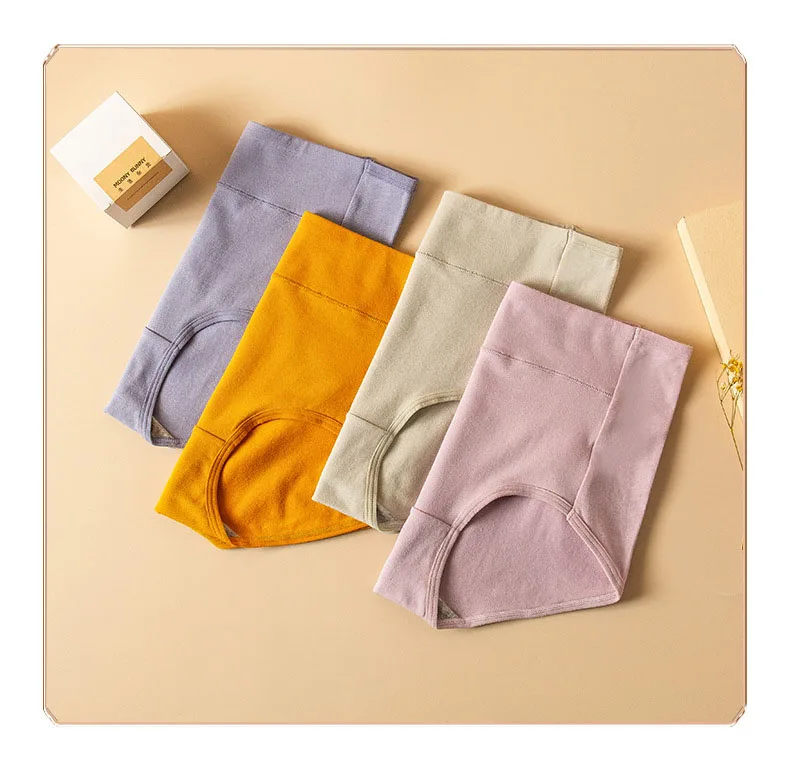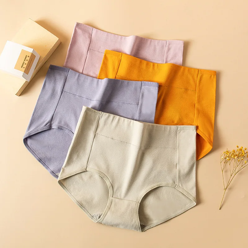 Женское нижнее белье с завышенной талией средней длины, Удобные однотонные трусики, простое нижнее белье, женские хлопковые дышащие трусы с промежностью