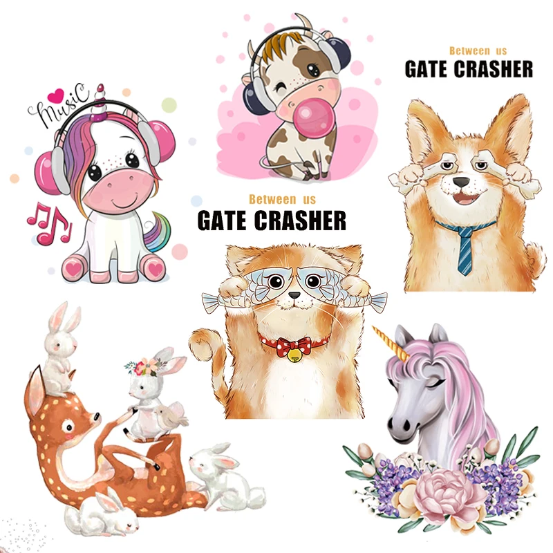 Мультяшная симпатичная аппликация в виде животных теплопередача для одежды корги нашивка единорога железная переноска для одежды наклейки сделай сам